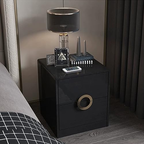 Black/White Nightstand, End Side Table, Modern Bedside Table with 2 Drawers, Large Night Stand for Bedroom Living Room (Color : Black, Size : 40x40x45cm)