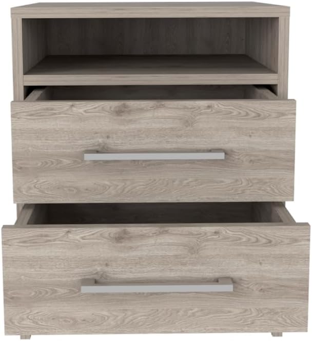 Leyva Nightstand with Superior Top, Two Drawers, Stylish Light Gray Finish, Adding Modern Elegance to Your Space