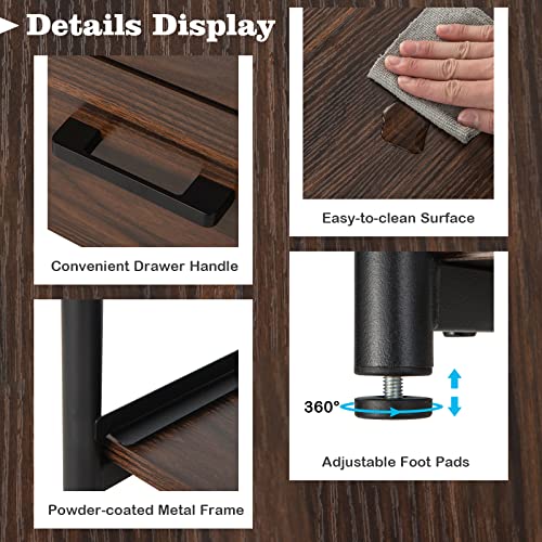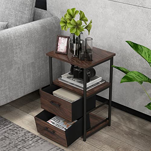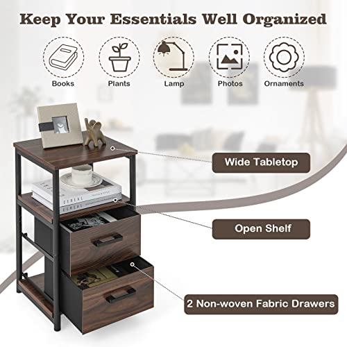 COSTWAY Nightstand Set of 2, 3-tier Bedside Sofa Side Table with 2 Fabric Drawers and Open Shelf, Industrial End Table for Bedroom, Living Room, Dormitory