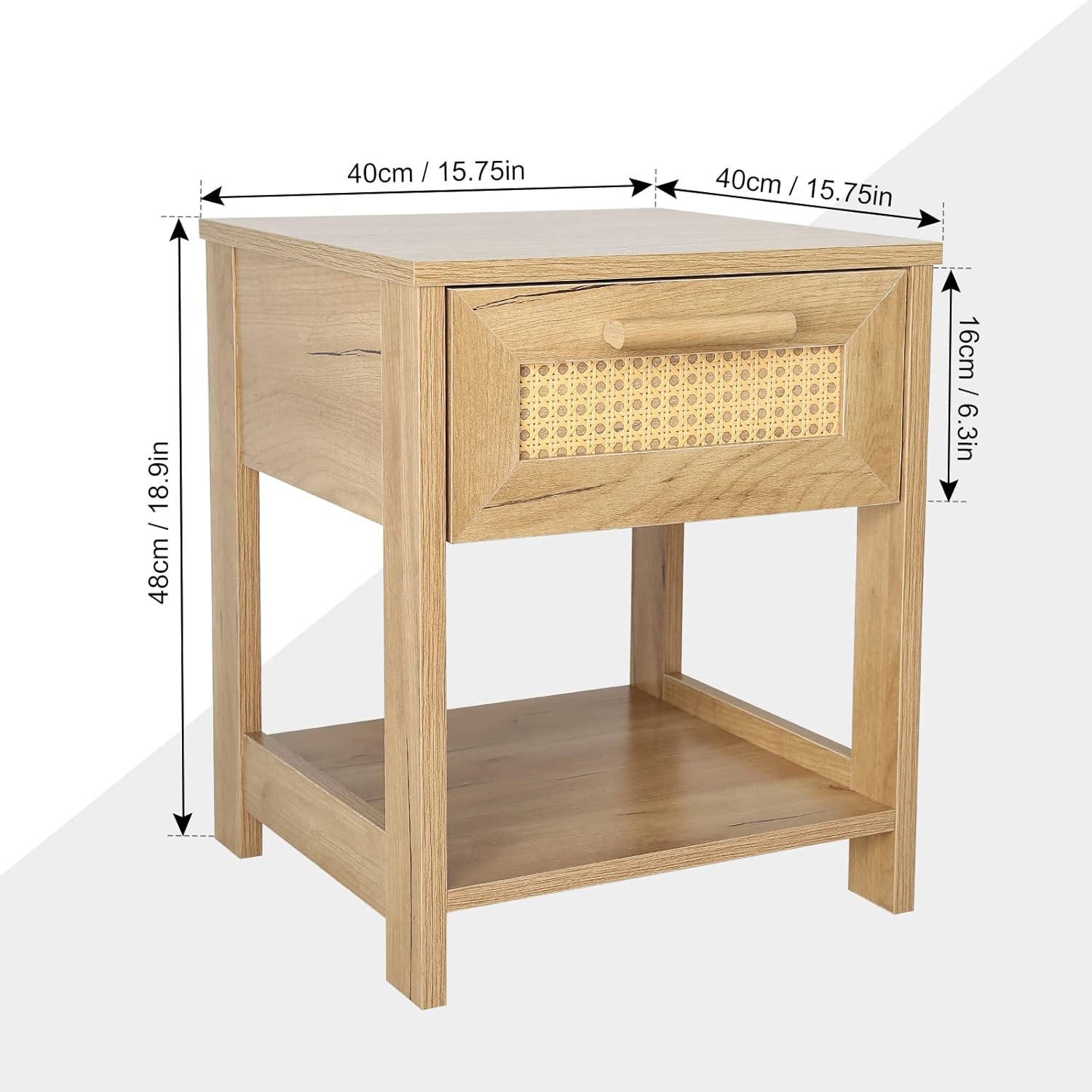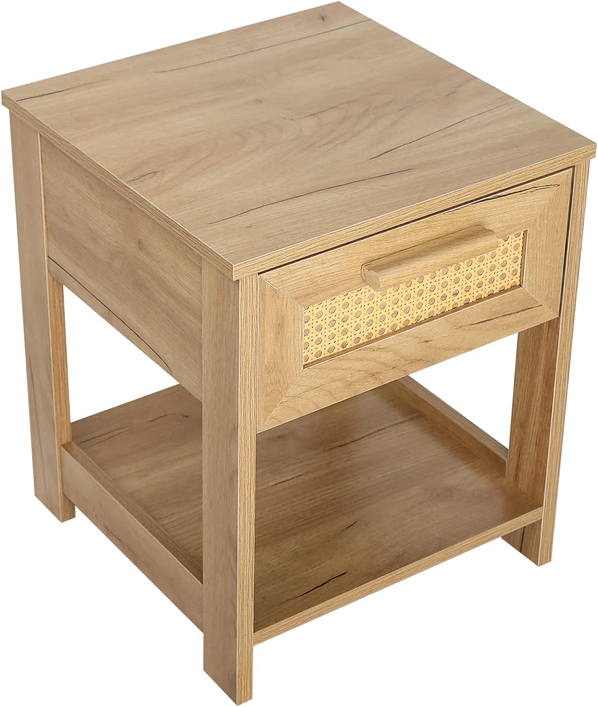 Nightstand Set of 2, 2 Drawer Dresser for Bedroom, Small Dresser with 2 Drawers and Two Open Storage Shelf, Bedside Furniture, Night Stand, End Table with Rattan Design, Natural Color