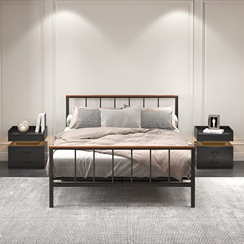 LED Nightstand with Charging Station & 2 Drawers, Modern Bedside Table with Built-in Ambient Lighting, 2 Standard Plug Outlets & 2 USB Ports for Bedroom Décor and Nighttime Convenience, Gray