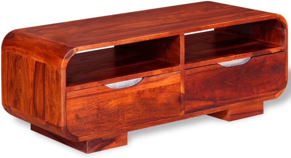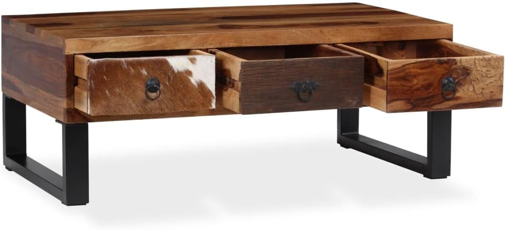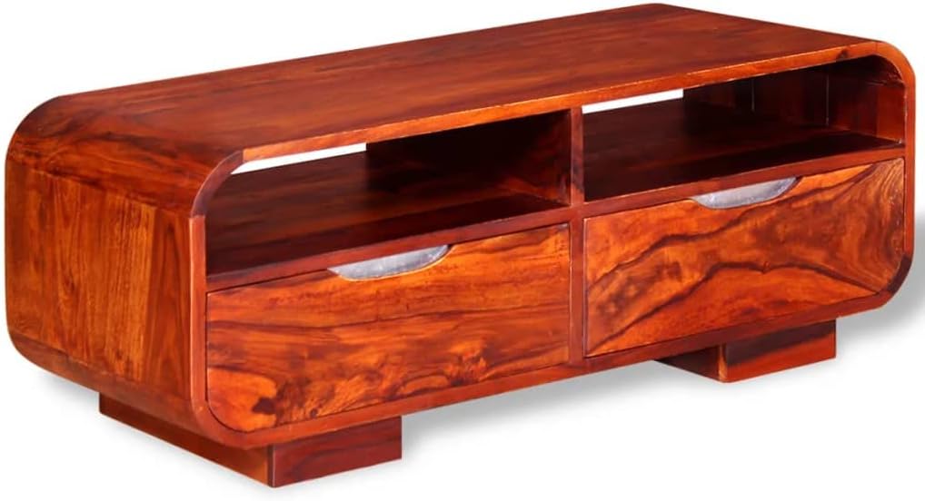 Stylish Elegant Coffee Table, Sturdy Durable Solid Sheesham Wood Coffee Table with Compartments and Bin Drawers, TV Stand for Home Living Room, Office 35.4"x15.7"x13.8"