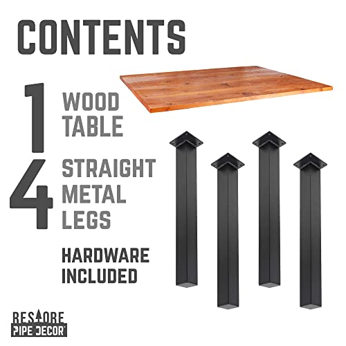 PIPE DECOR Sunset Cedar Solid Wood Rustic 60” Kitchen Table Kit with (2) 28” Matte Black Square Metal Legs, Industrial Dining Room Table