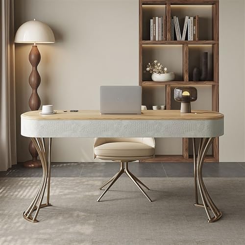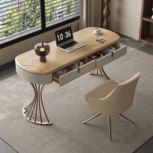 Compuer Desk Solid Wood Desk Living Room Study Office Desk High-Grade Ash Wood Modern Simple Light Luxury Household Pc Table Writing Desk PC Desk(Yellow+Chairs,1.6 * 0.6 * 0.75m)