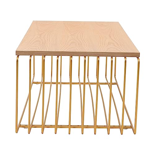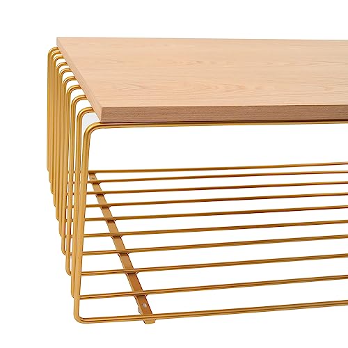 LeisureMod Walden Mid Century Modern Rectangular Coffee Powder Coated Steel Frame, with Ash Wood Veneer Top Accent Table for Living Room and Bedroom, White