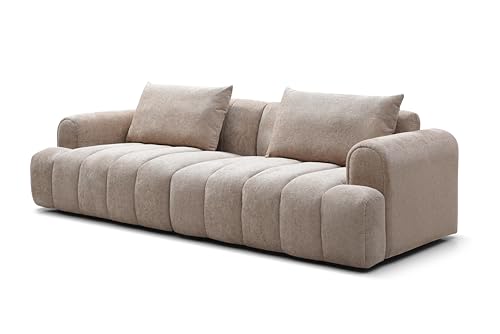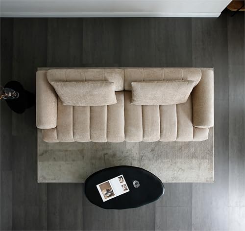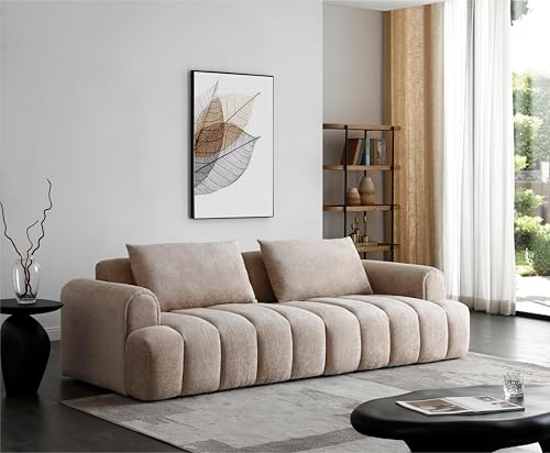 Modern Sectional Sofa, 4-Seater, Premium Upholstered Sofa Couch for Living Room Apartment Small Space (Teddy + Beige)