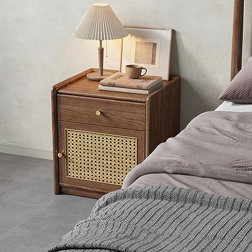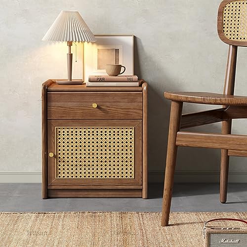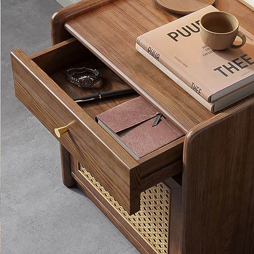 Stylish Nightstand Side Table with Hidden Safe, Ash Wood Bedside Table with Gun Safe for Pistol, Protect Your Pistal and Valuables (Brown)
