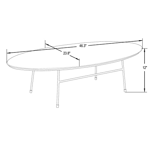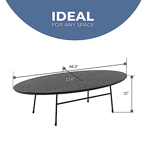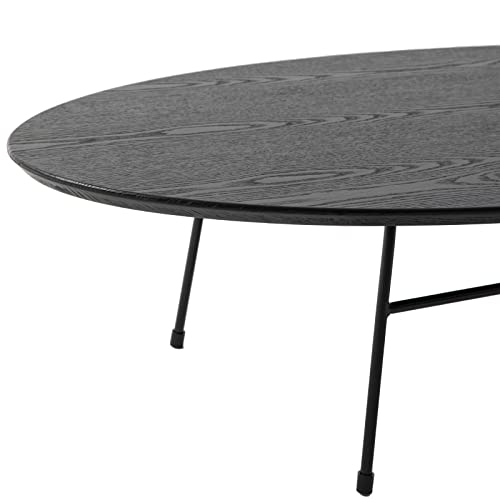 LeisureMod Rossmore Mid Century Modern Oval Powder Coated Steel Frame, MDF Wood with Ash Veneer Top Coffee Circular Accent Table for Living Room and Bedroom, Black