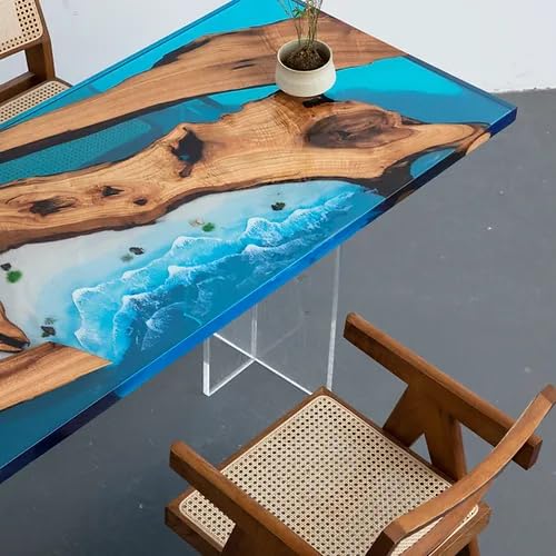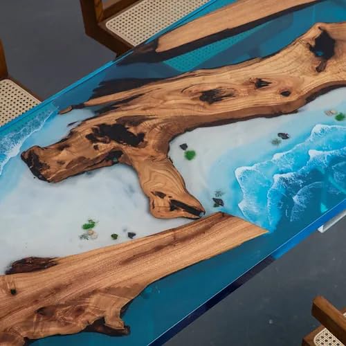 Natural Wood Ocean Look Epoxy Realistic Beach feel Epoxy Dining Table Coffee Table End Table Bar Counter Top Living Room Table Wall Art Wooden Table (without Stand, 60 x 30 Inches)