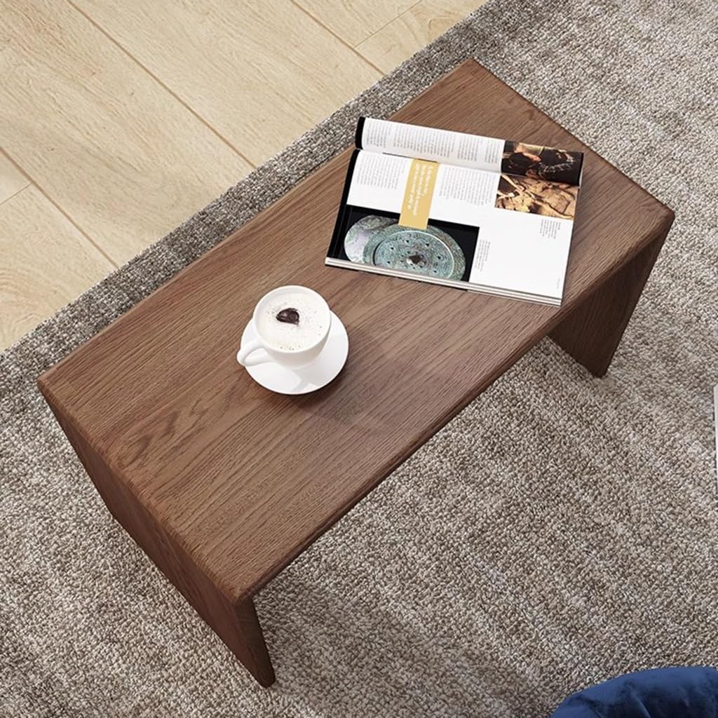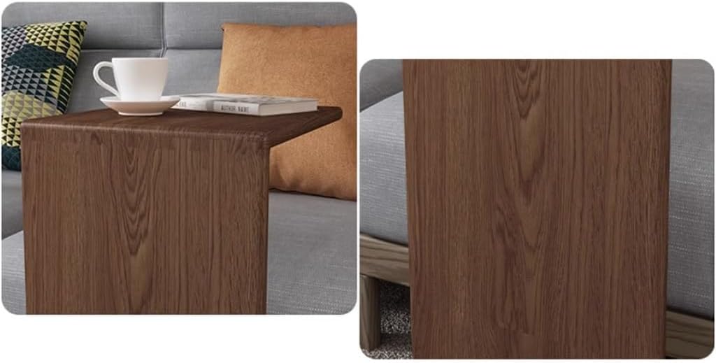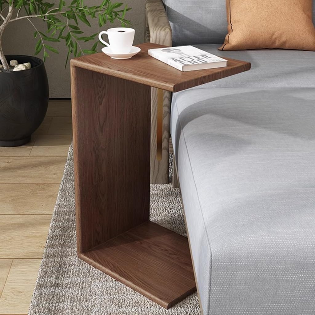 Solid Wood Frame C-Shaped End Table Compact Sofa Side Table Small Rectangle Coffee Table Snack Desk Walnut Color, for Bedroom Living Room