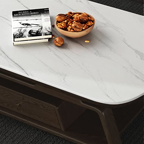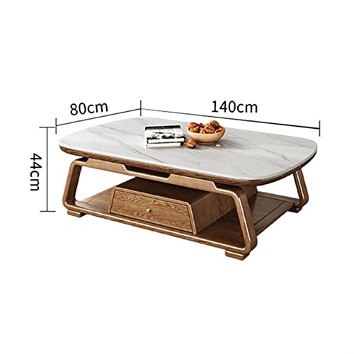 Modern Coffee Table Modern Luxury Coffee Table, Slate Top and Ash Wood Frame, Large Oval Center Table with 1 Drawers and Open Storage Shelf for Living Room Side End Table (Size : 140x80x44cm)