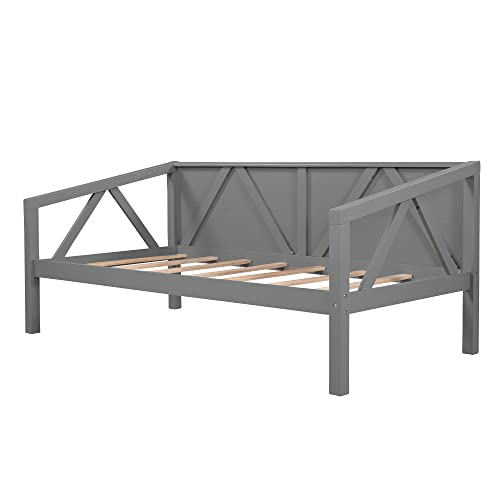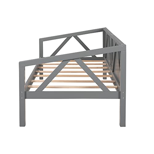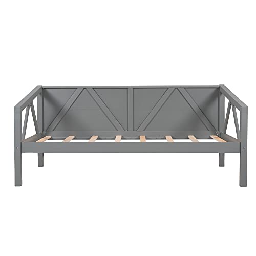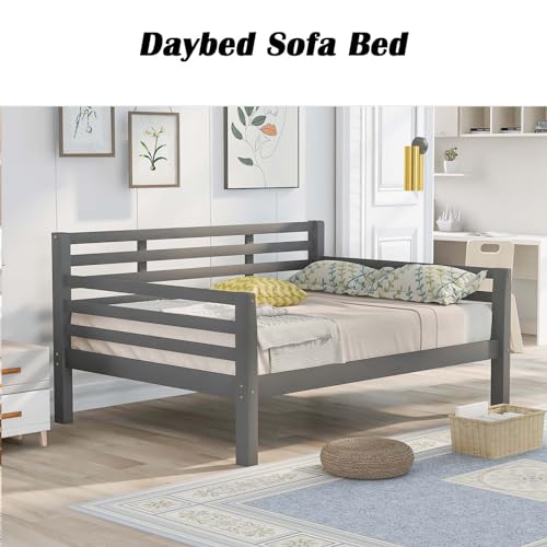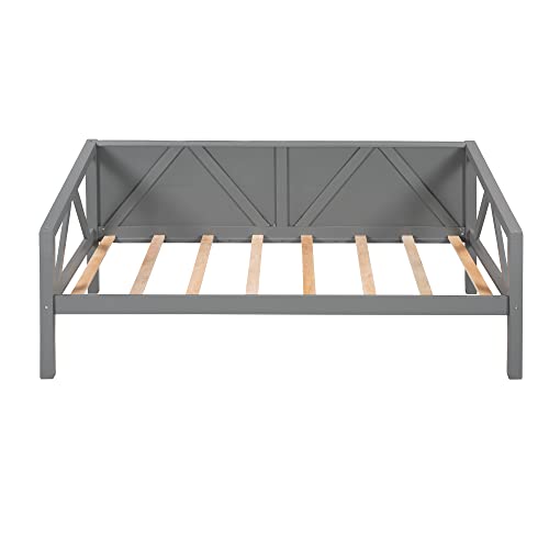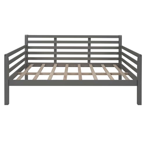 Full Size Wooden Day Bed Frame with Headboard, Wood Slats Support, No Box Spring Needed, Easy Assembly for Bedroom Small Living Room Apartment, Classical Sofa Bed Frame (Gray)