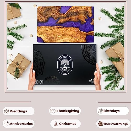 Handmade Olive Wood Cheese Board with Resin, Charcuterie Boards & Serving Tray, Wooden Epoxy Serving Board, Chopping and Cutting Board for Meat Vegetable & Fruit, Premium Gift for Kitchen