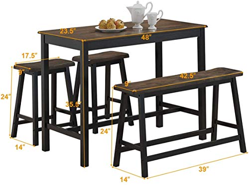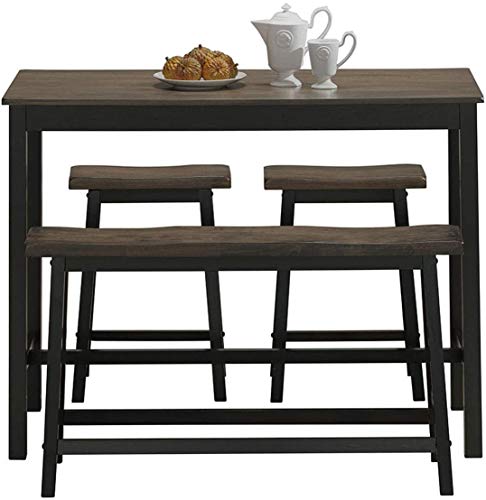 LUARANE 4-Piece Dining Table Set, Solid Wooden Counter Height Table with 1 Bench and 2 Saddle Stools, Modern Industrial Kitchen Table Furniture Set for Home Kitchen Living Room (Gray & Brown)