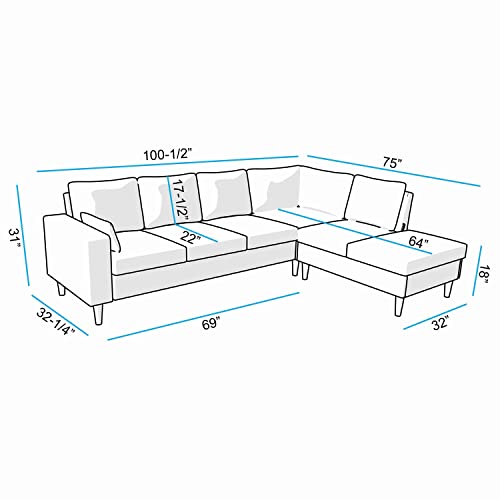 Panana Modular Sectional Sofa L Shaped Couch Convertible Sofa Couch with USB Charging Port Chaise