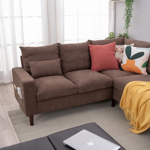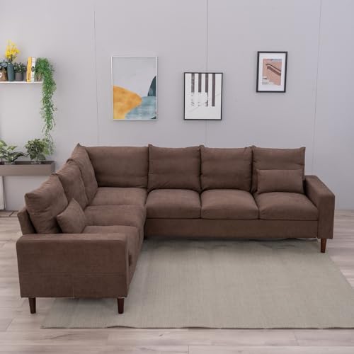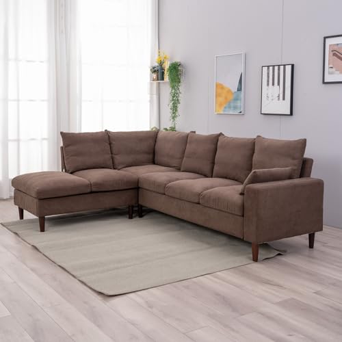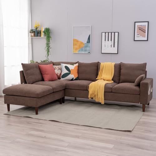 Panana Sectional Sofa with USB Charging Port Chaise Set 5 Seats Modular Corner Sectional Couches Living Room Furniture Sets L Shape Corner Fabric Couches, Brown