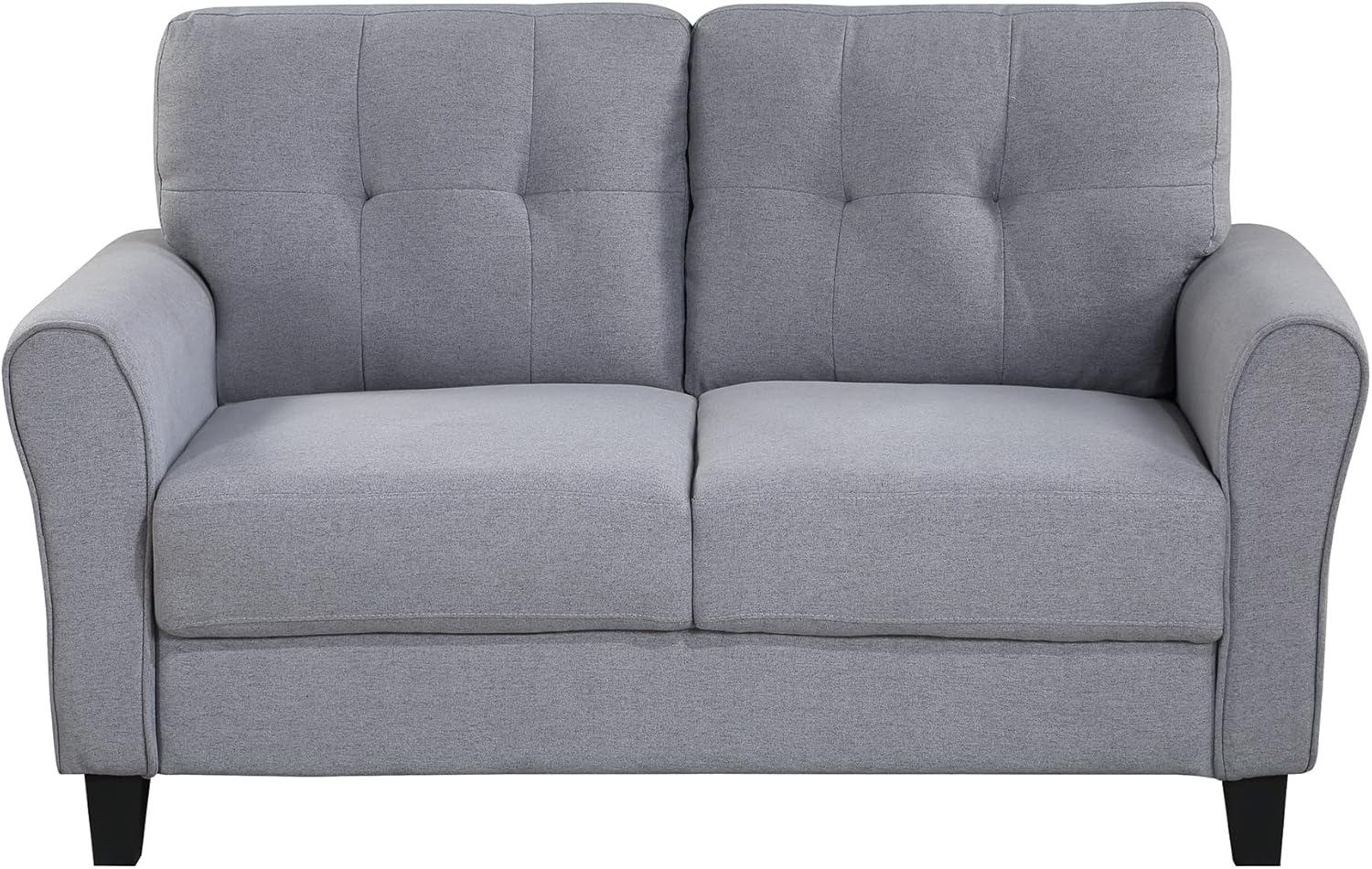 Merax Modern Upholstered Living Room Sofa Cozy Linen Bedroom Loveseat Couch for Small Space Easy Assemble Grey Love, 2-Seat