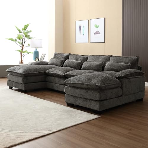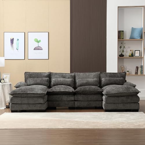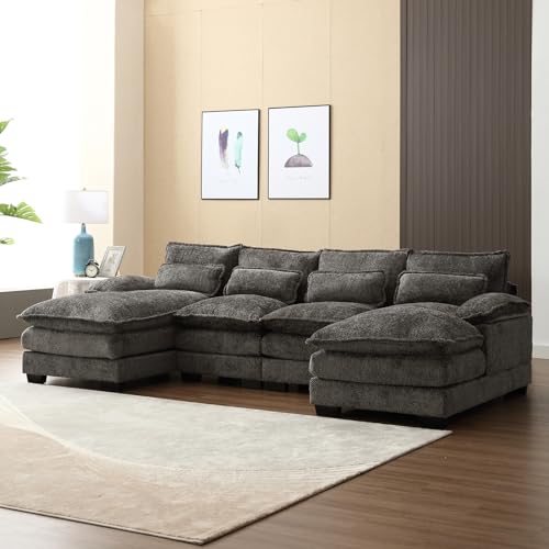 CALABASH Living Room Sectional Sofa Couch, Modern Chenille U Shaped Cloud Couches, Convertible Comfy Modular 4-6 Thick Seater Sofa for Apartment, Office,110.6 Inches
