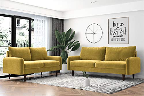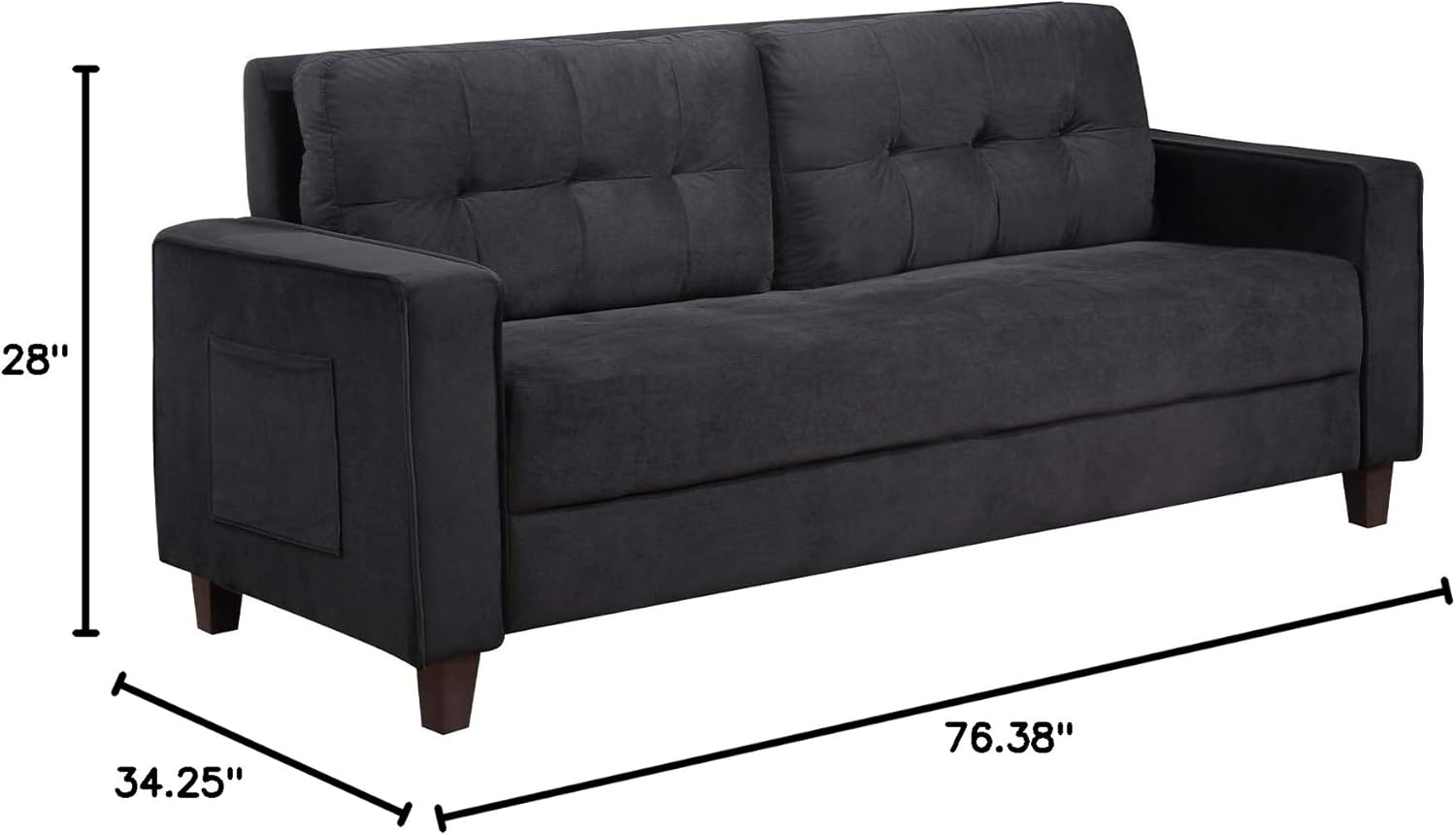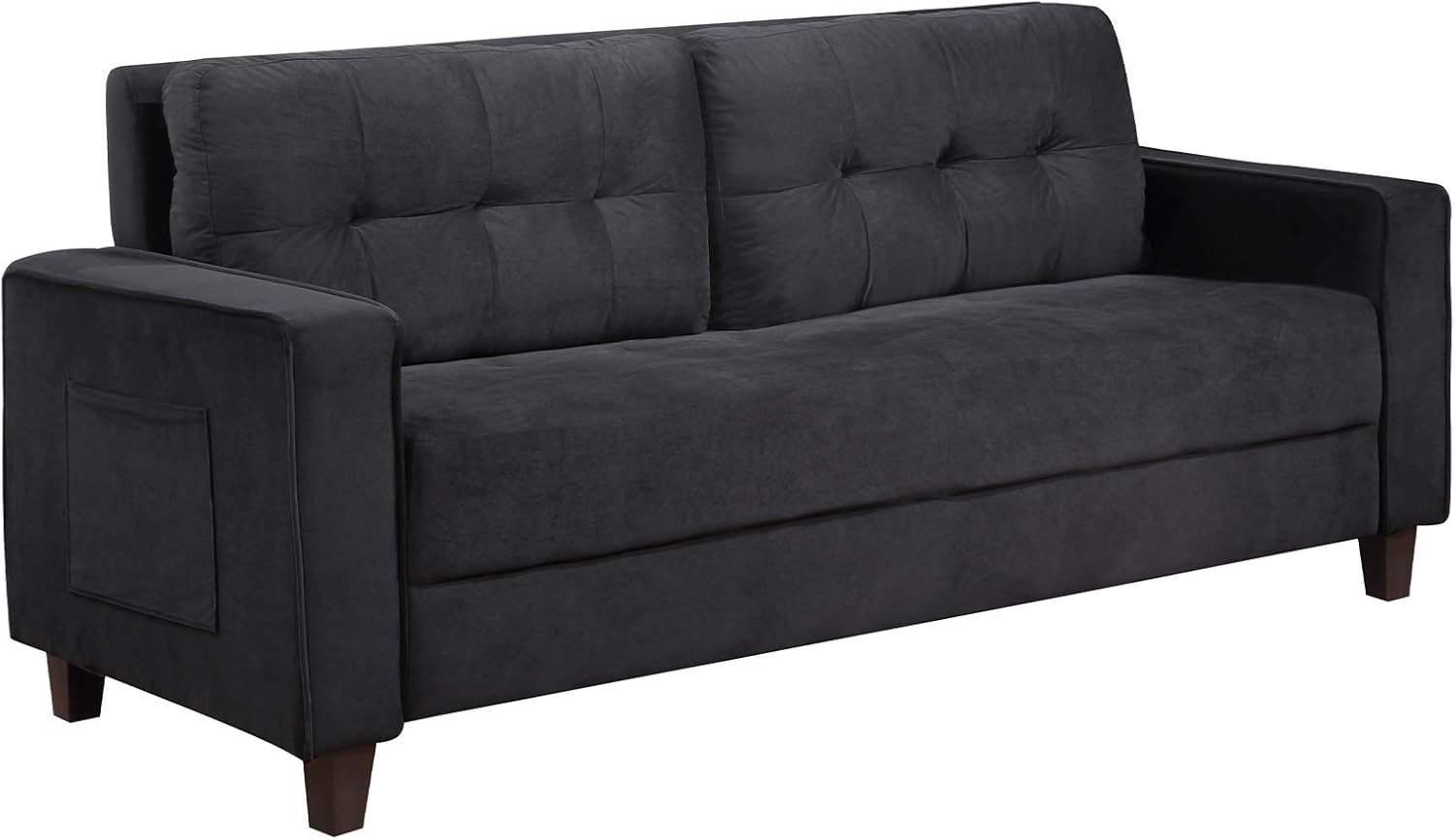 Merax Modern Mid Century Comfy Couch Tufted Velvet Sofa for Living Room Bedroom Office Black Love, 3-Seat