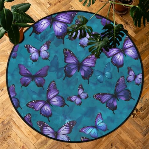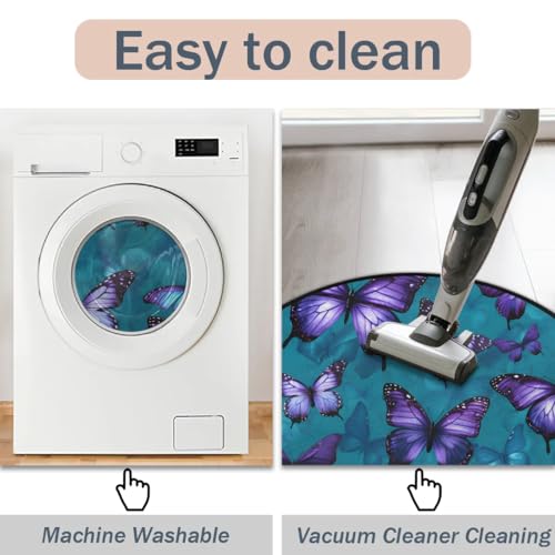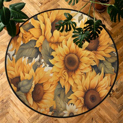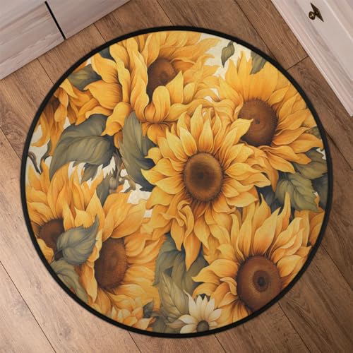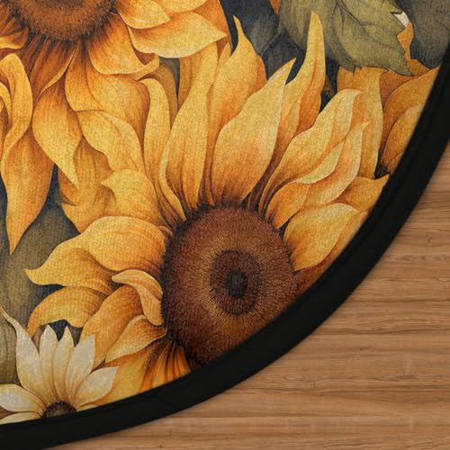 Mountains Rivers Round Rug 5.2Ft Washable Non Slip Entry Area Rugs Moon Nights Circle Floor Mat Entryway Carpet Pads for Living Room, Dining Room, Kitchen, Bedroom, Office