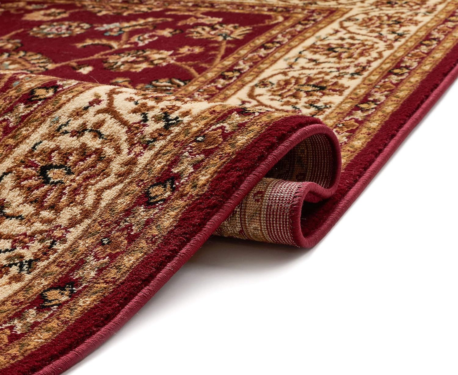 Well Woven Noble Sarouk Red Floral Oriental Formal Traditional (5'3" Round) Area Rug Easy to Clean Stain Fade Resistant Shed Free Modern Contemporary Transitional Soft Living Dining Room Rug