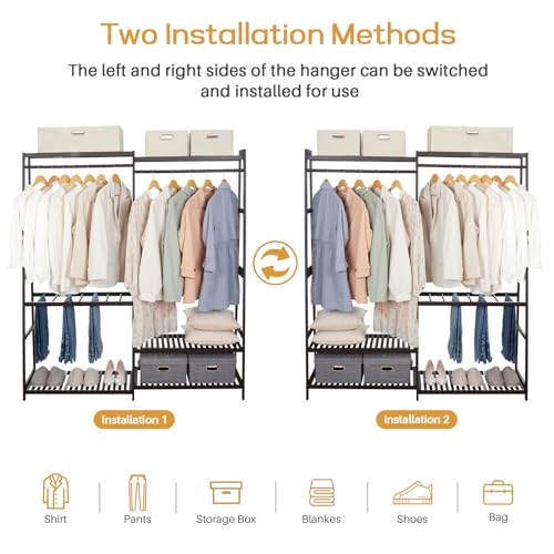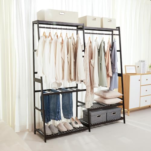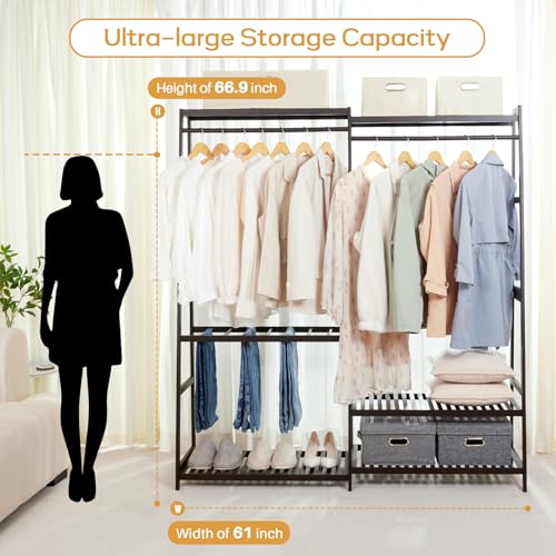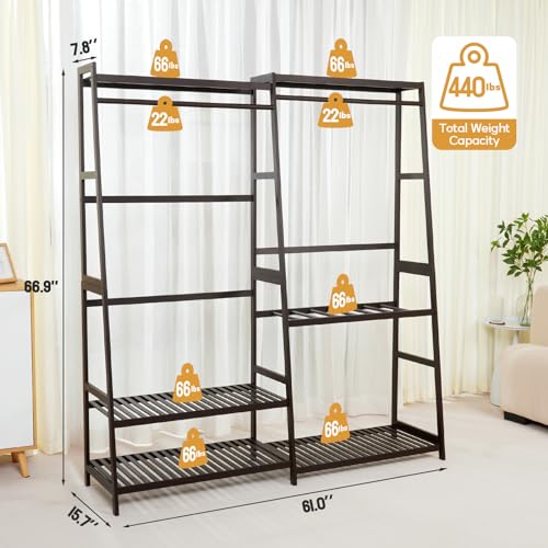 Homde Bamboo Clothes Rack Heavy Duty Garment Racks for Hanging Clothes, Max Load 440lbs, Freestanding Clothing Rack Closet with 6 Shelves