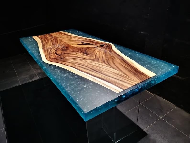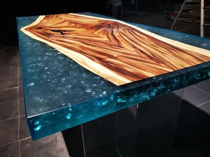 Natural Wood with Epoxy Dining Table Resin Coffee Table Living Room Table for 2, 4, 6, 8 Epoxy RIver Table Top Resin Table Home Decor Side/End Table Patio Table (18" Inches Tall, 90 x 36 Inches)