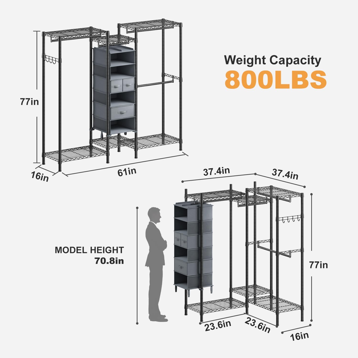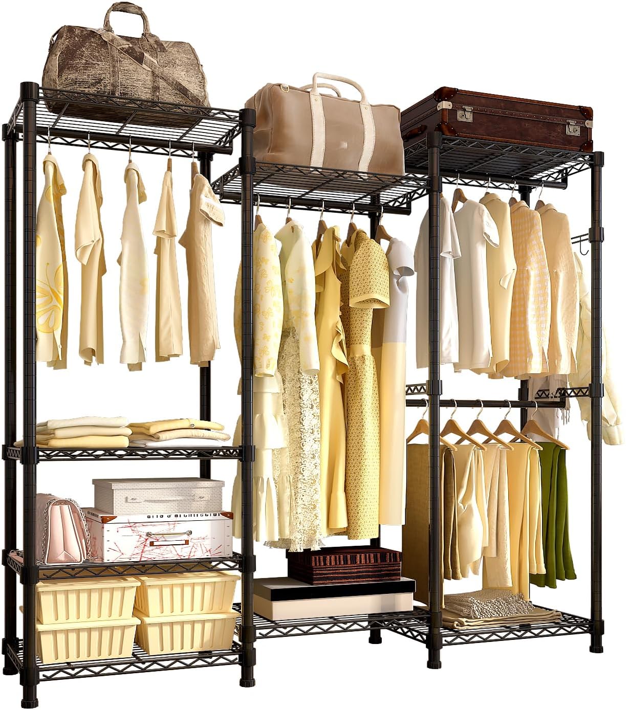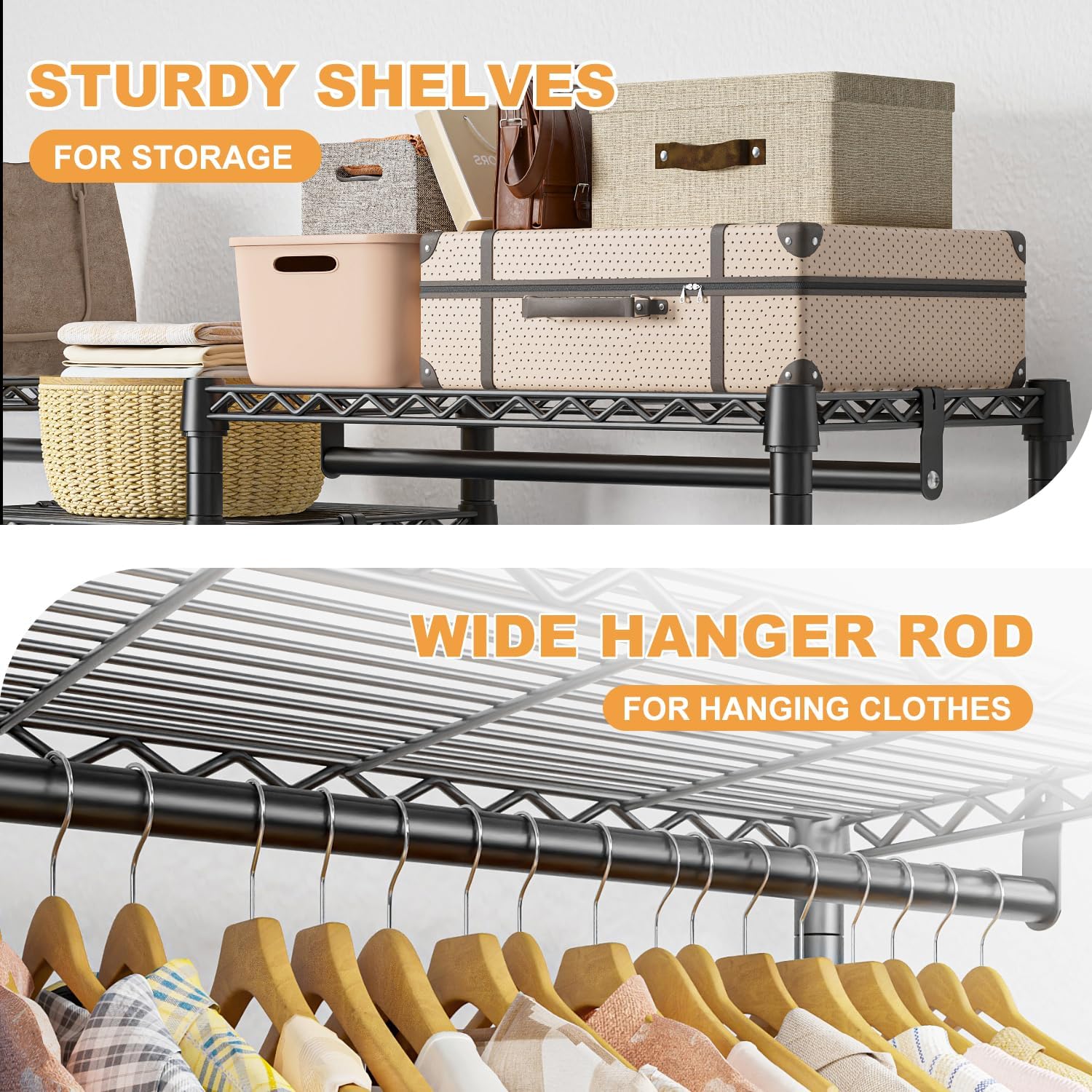 Raybee Clothes Rack, Clothing Racks for Hanging Clothes Heavy Duty Clothing Rack 800LBS Adjustable Clothes Racks for Hanging Clothes Metal Wire Garment Rack with 7 Drawers, Portable Closet Rack, Black