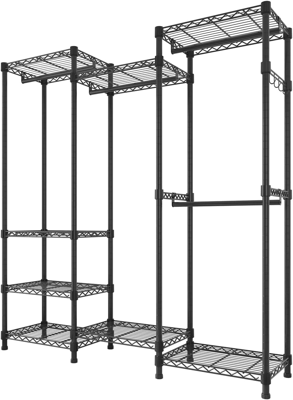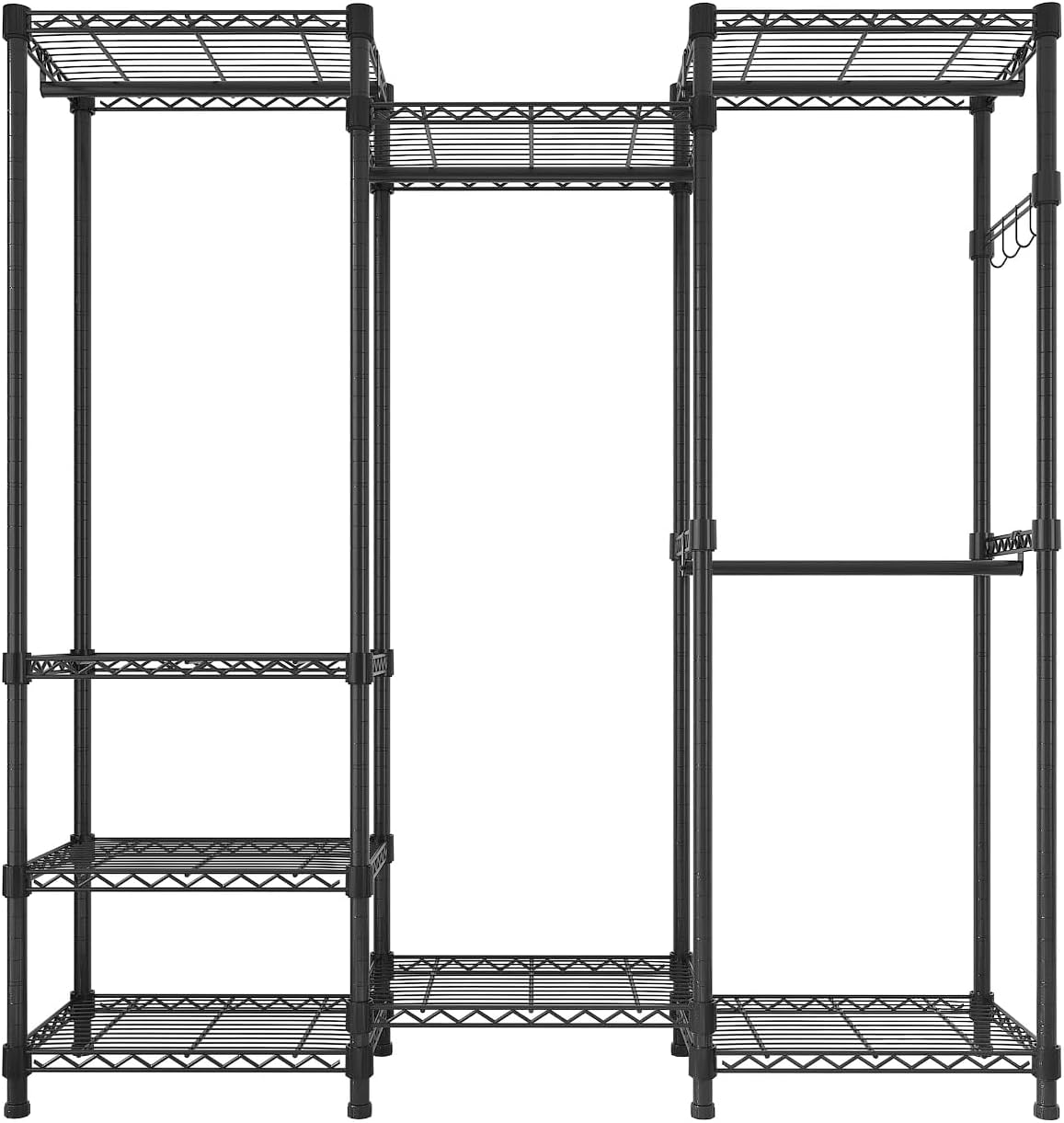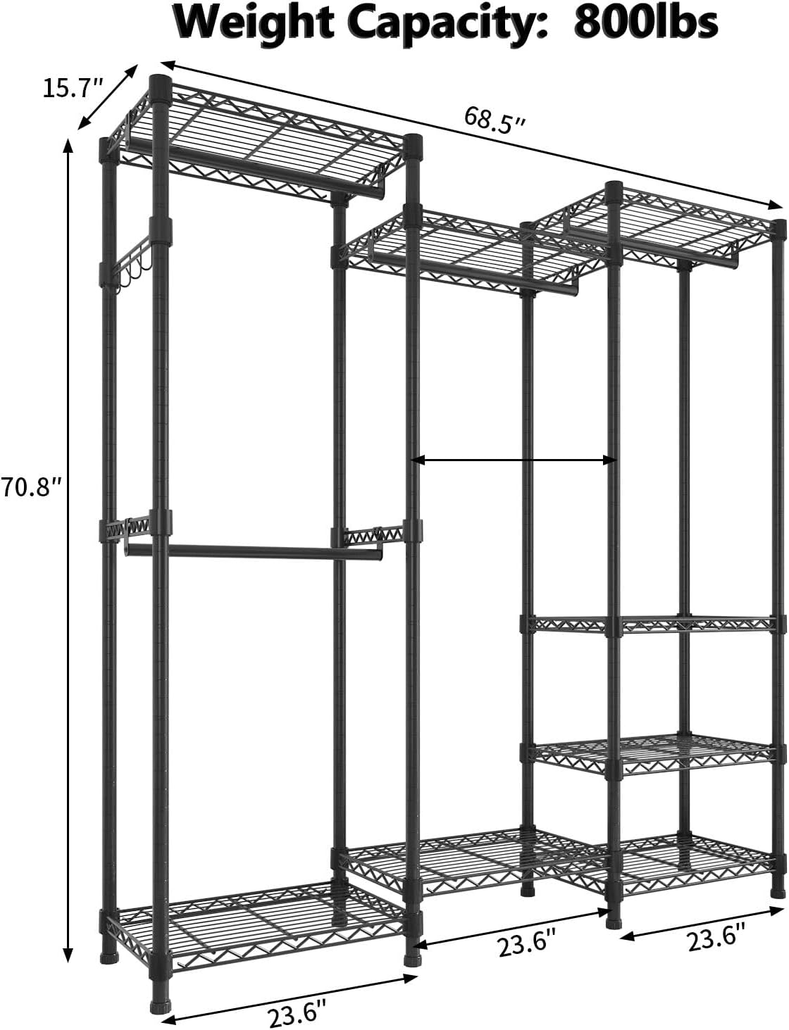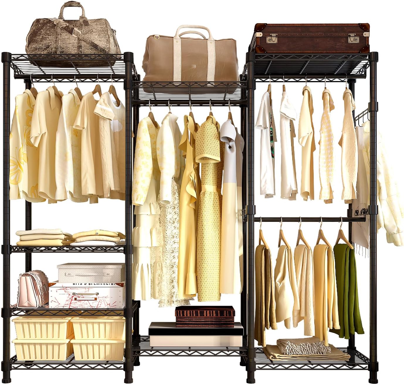 Raybee Clothes Rack, Clothing Racks for Hanging Clothes Heavy Duty Clothing Rack 800LBS Adjustable Clothes Racks for Hanging Clothes Metal Wire Garment Rack with 7 Drawers, Portable Closet Rack, Black