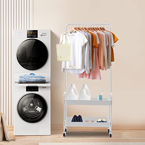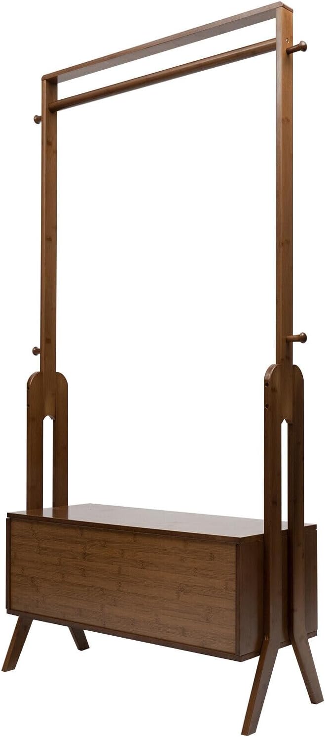 Bamboo Garment Rack with Platform and Drawer Freestanding Closet Organizers with 4 Hooks and Bottom Storage Shelves Clothes Hanging Rack for Bedroom Hallway Living Room Entryway