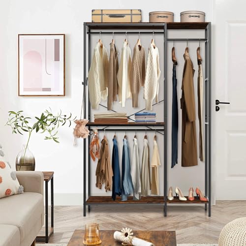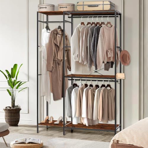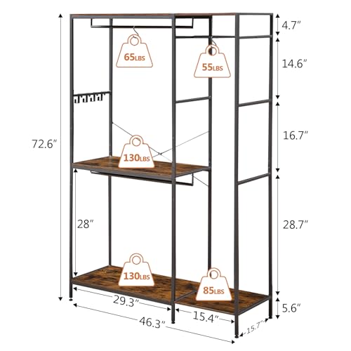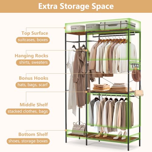 Freestanding Closet Wardrobe, Portable Clothes Rack for with Shelves, Heavy Duty Garment Racks Load 350LBS, Clothing Rack for Hanging Clothes, Free Standing Closet Organizer System