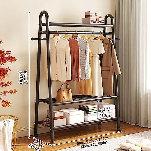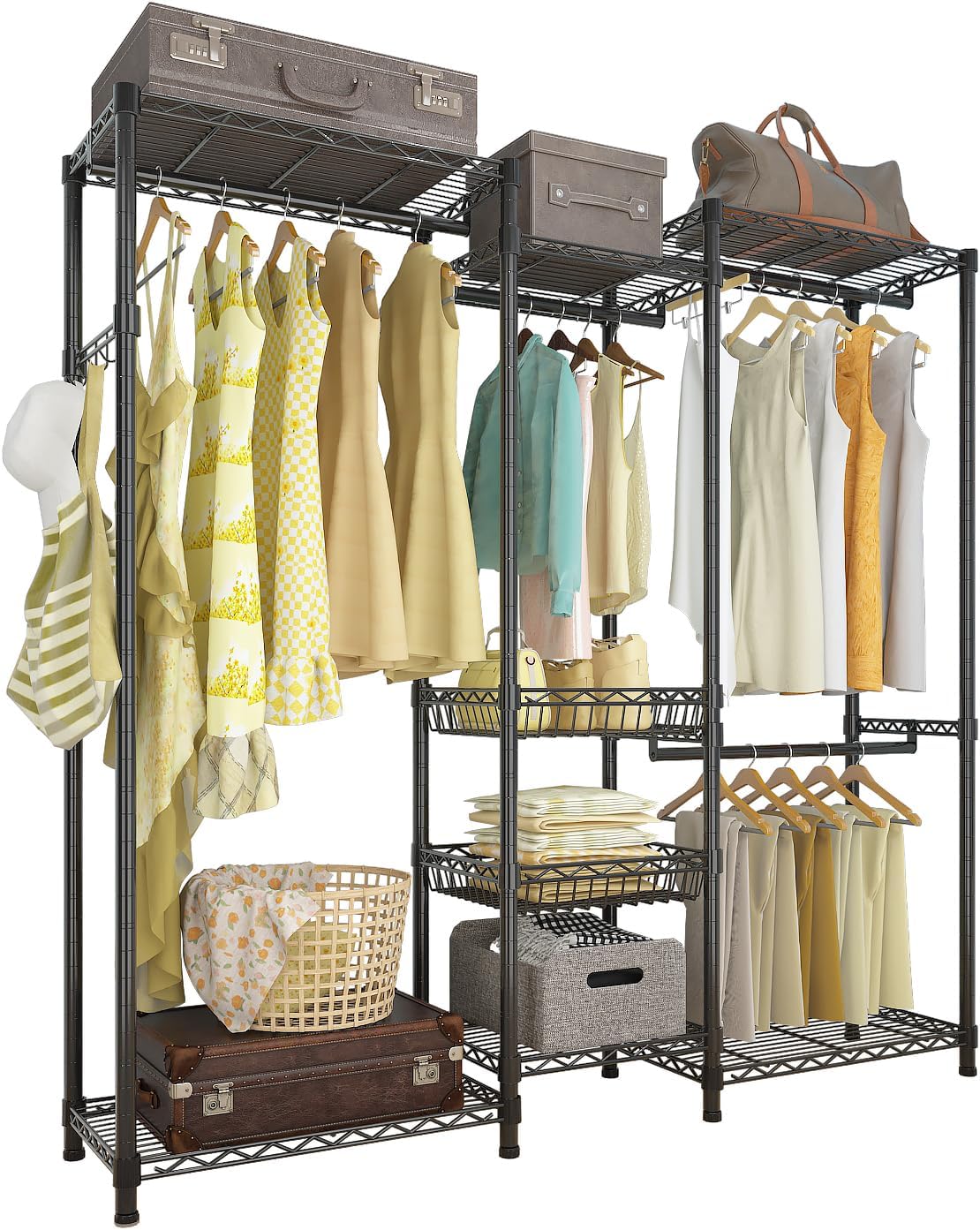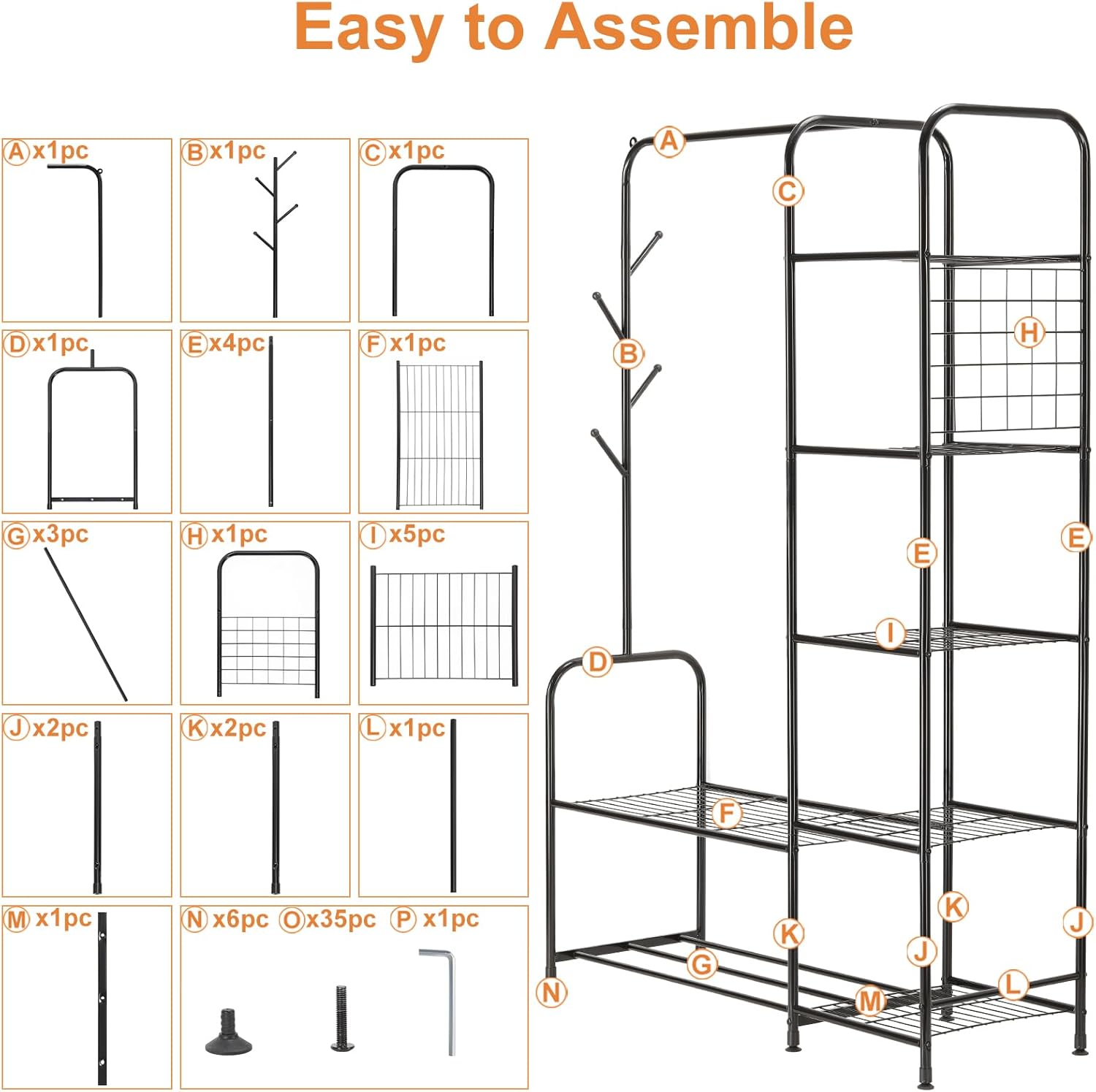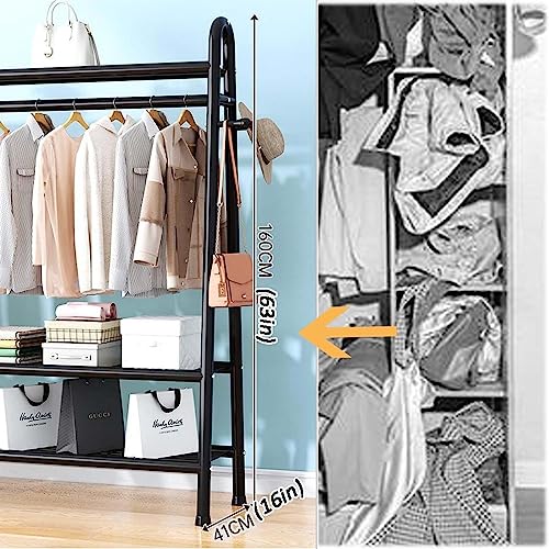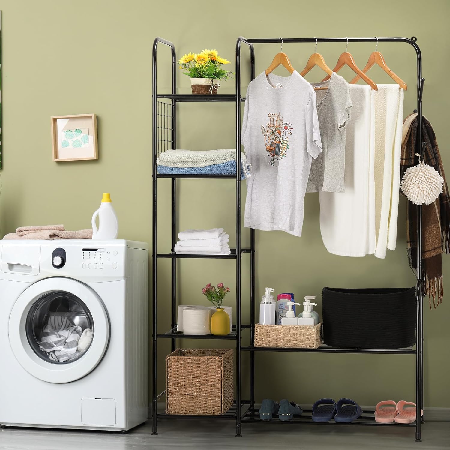 HEOMU Garment Rack with Shelves, Freestanding Clothes Rack, Portable Clothing Racks for Hanging Clothes, Coats, Shirts, Black