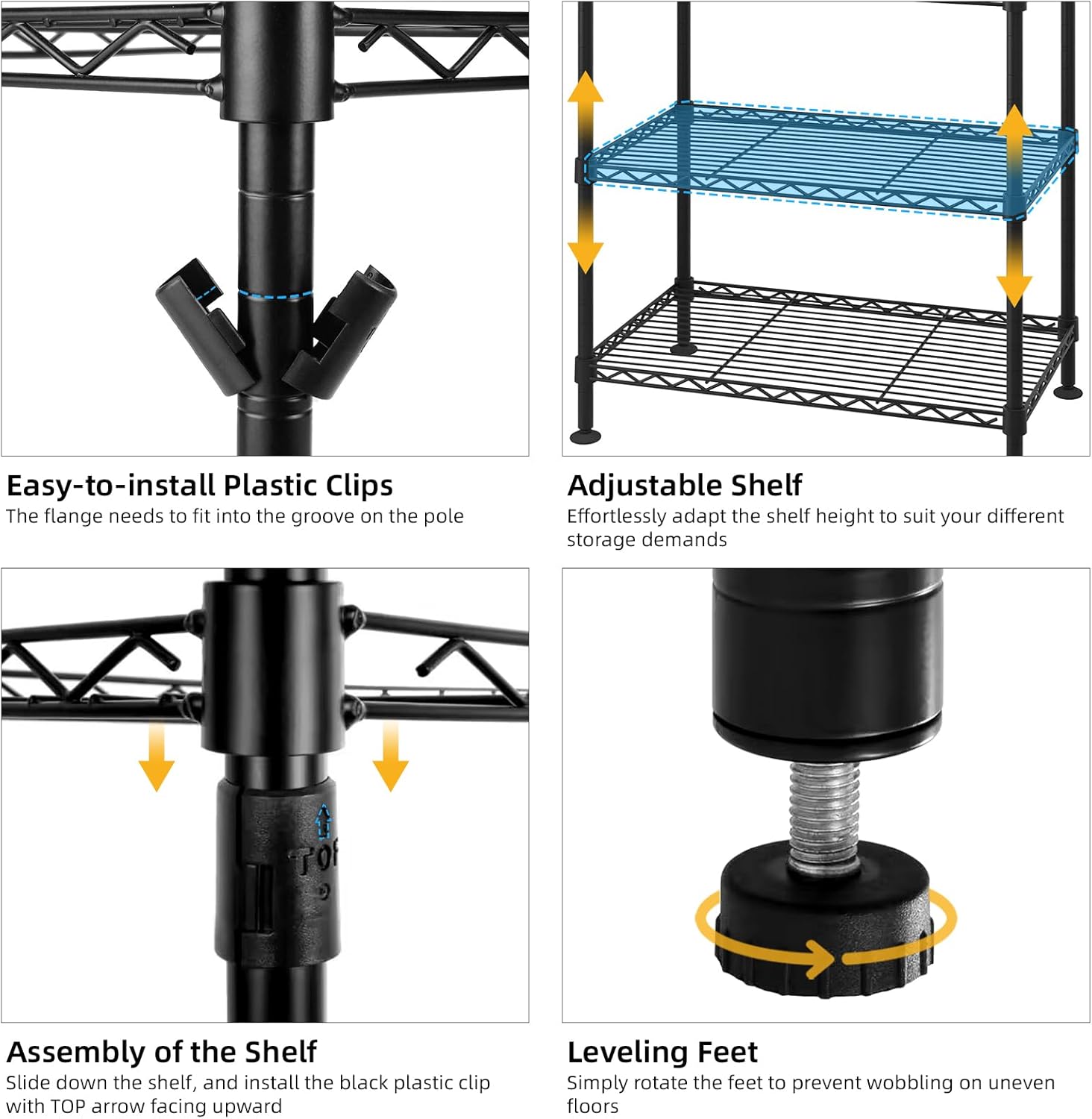 Karl home 4 Tiers Wire Garment Rack Heavy Duty Clothes Rack, Portable Closet Organizers Storage Clothing Wardrobe Freestanding Adjustable Shelves with 6 Rod, Black Metal Load Max 800LBS 75.6x15.7x74.8