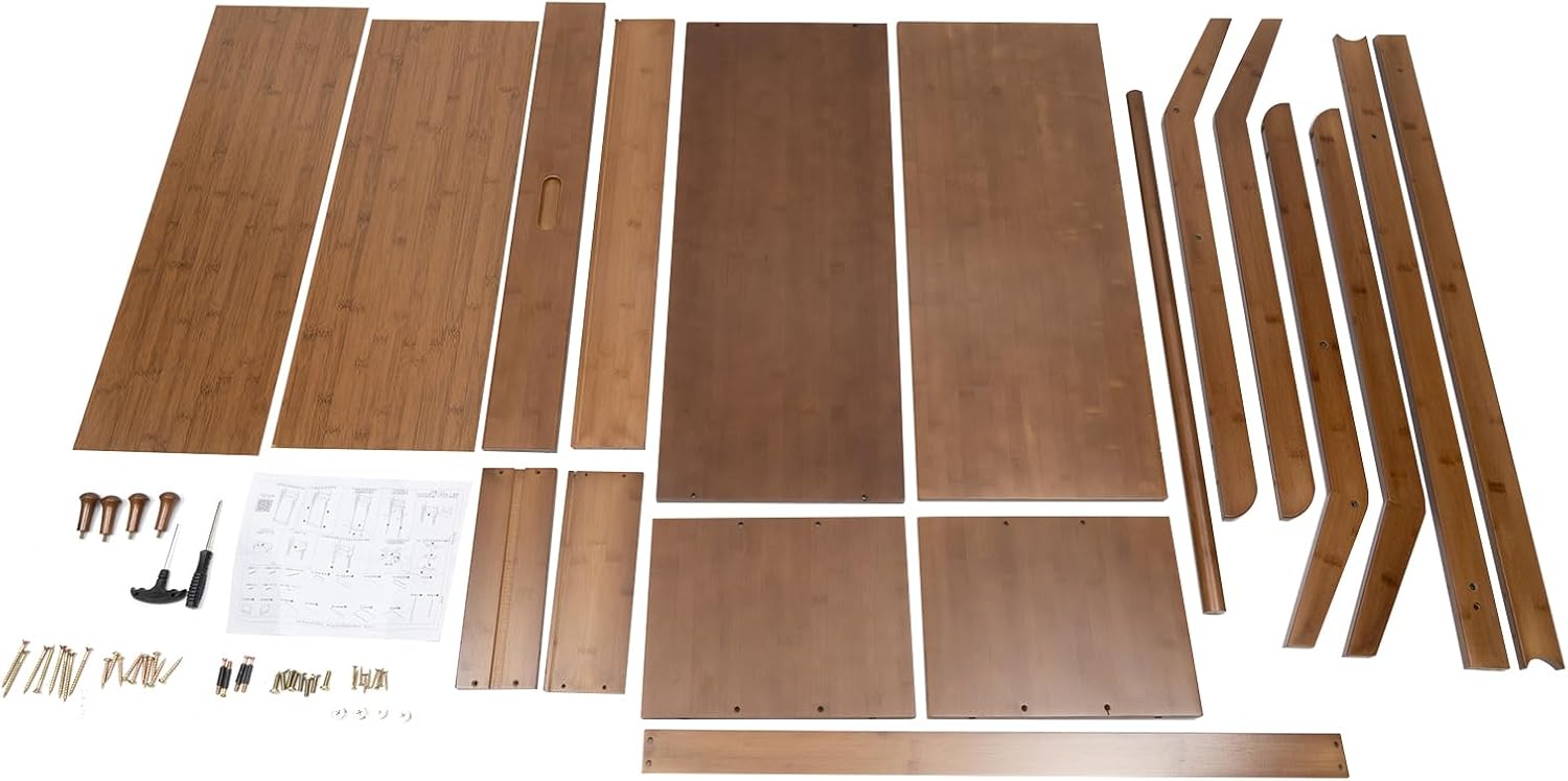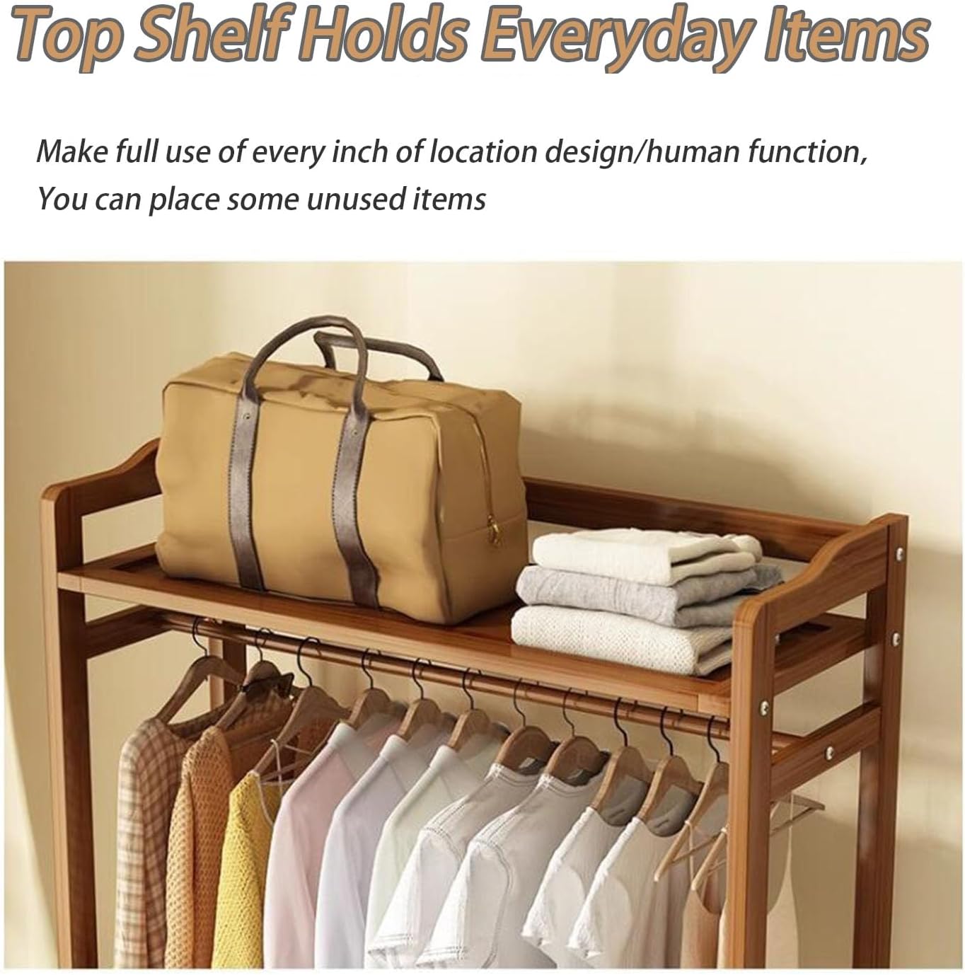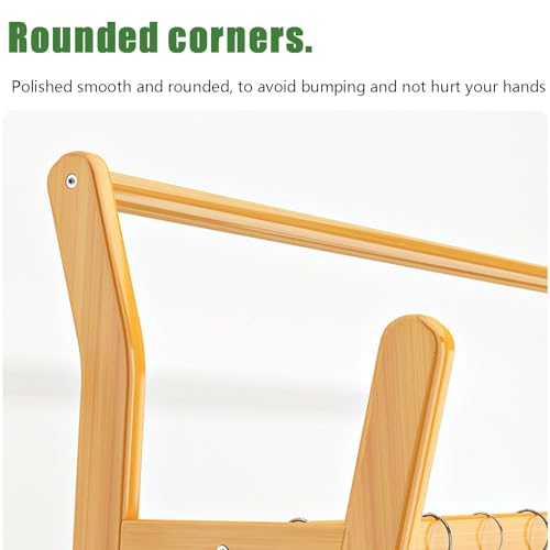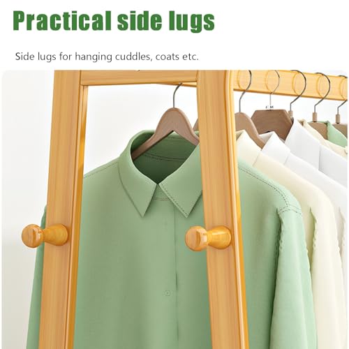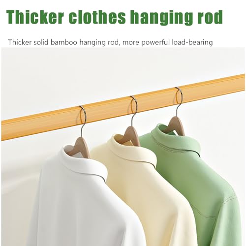 Bamboo Garment Rack, Free Standing Clothes Coat Hanger Rolling Closet Organizer with Shoe Rack Wardrobe Storage Shelves for Hall Living Room Bedroom Office