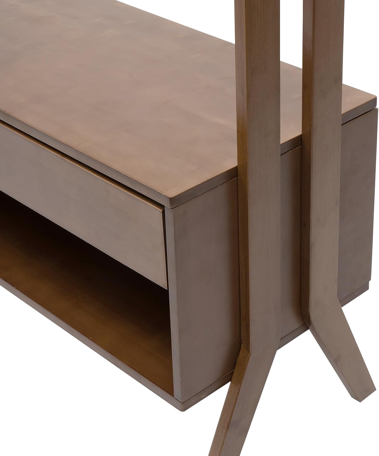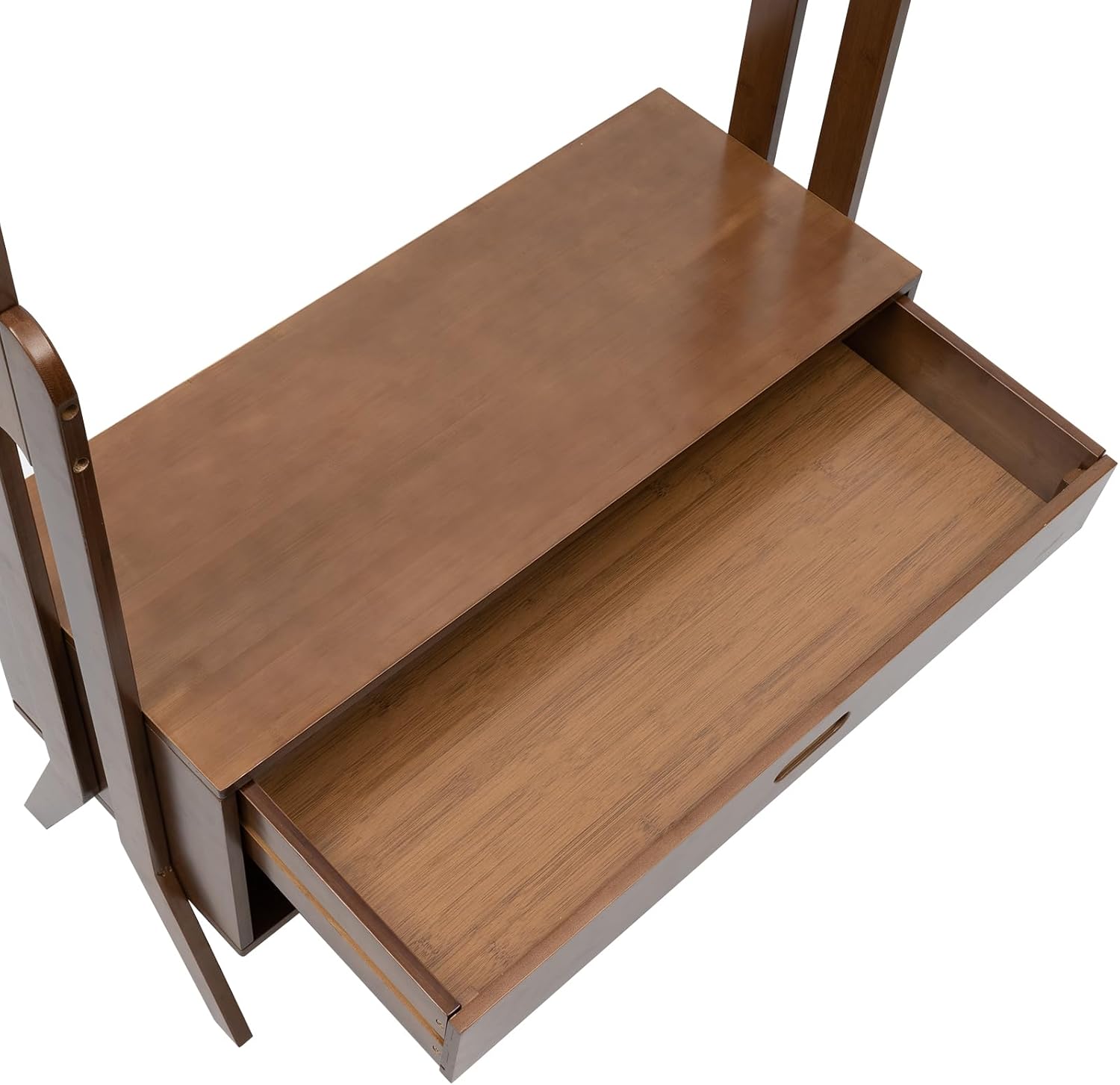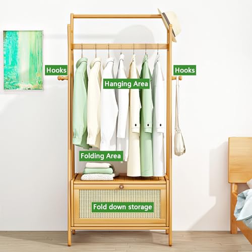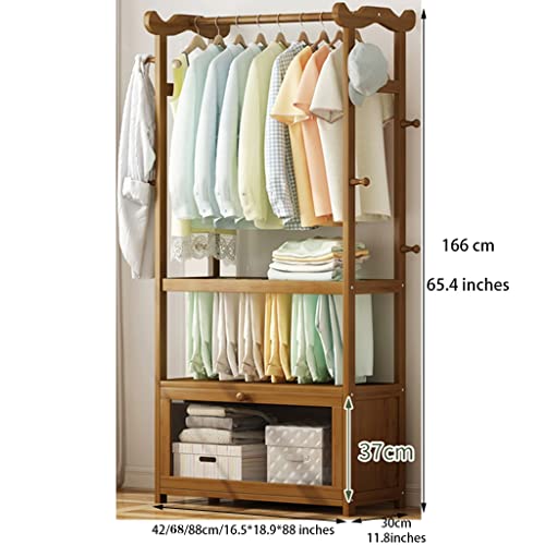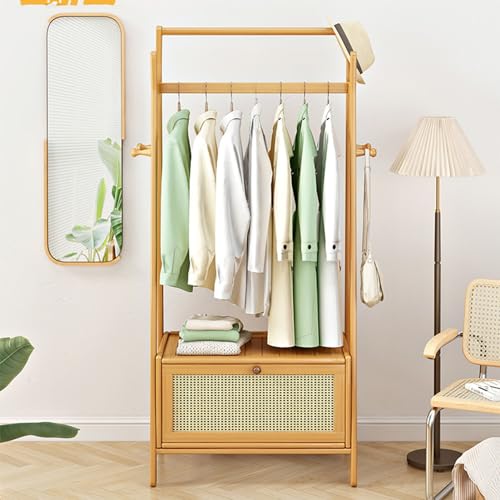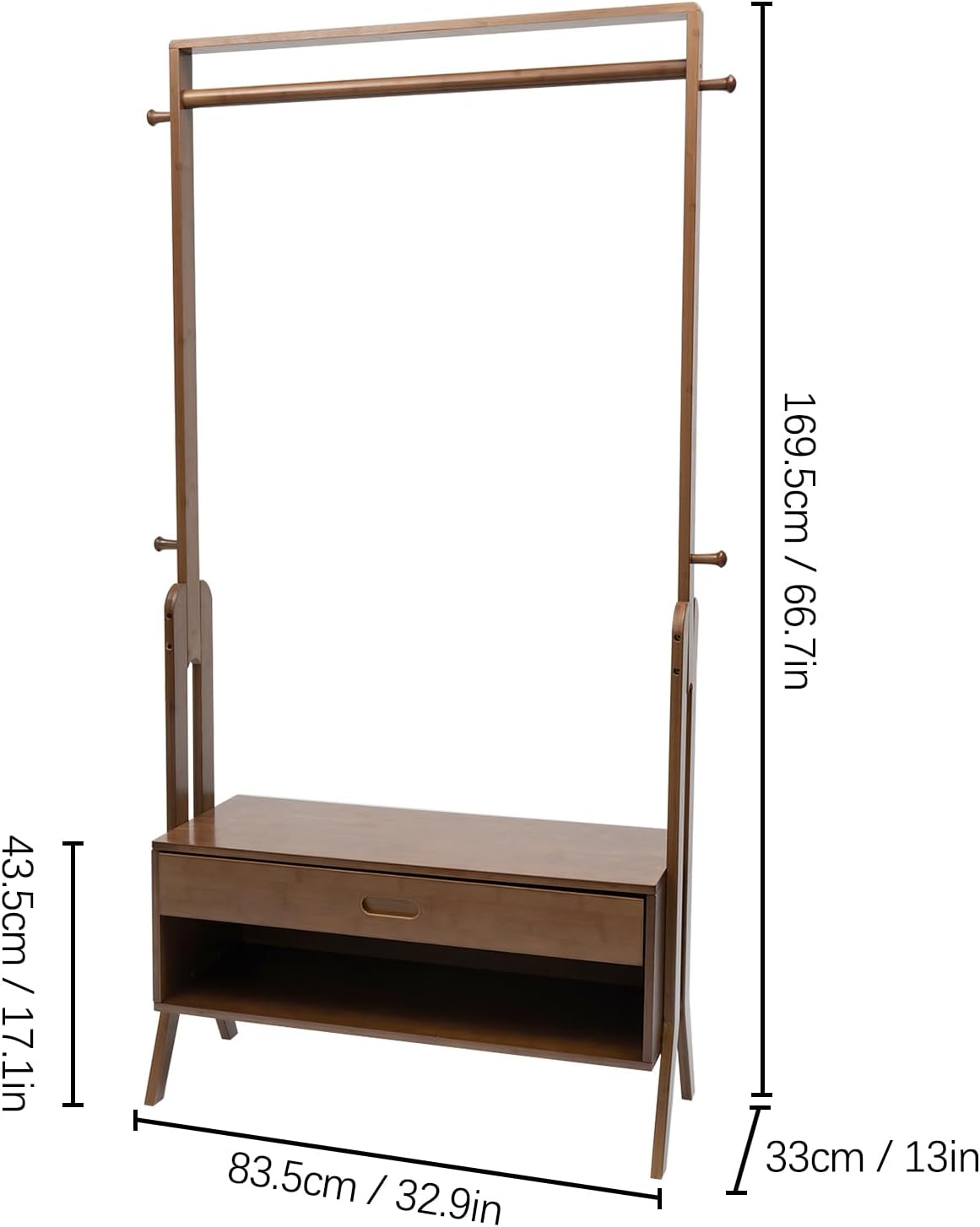Retro Bamboo Garment Rack 32.9 × 13 × 66.7 Inch Vintage Bamboo Garment Rack Vintage Freestanding Closet Organizer with Drawer Coat Display Rack for Bedrooms