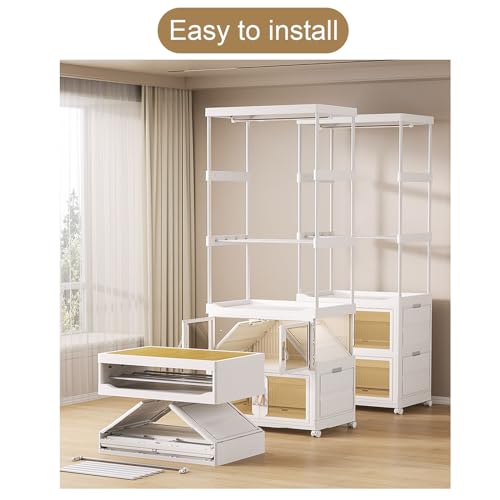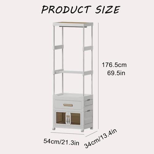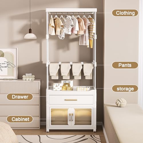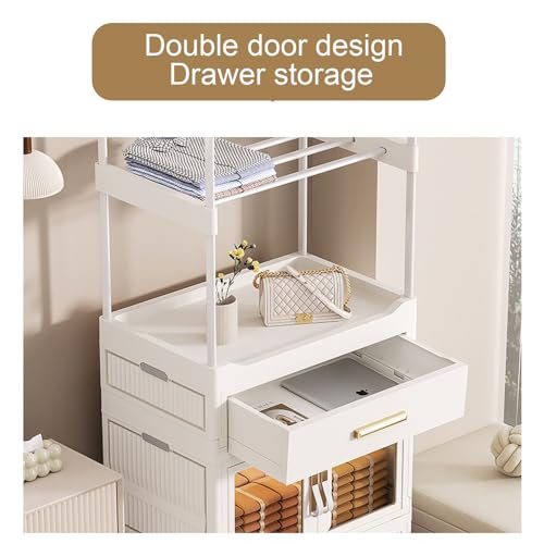 Garment Rack Cothing Rack with Drawers Clothes Organizer Stand on Wheels, 3-in-1 Rolling Clothes Storage Cart, Coat Rack,Clothing Wardrobe Storage Shelving with Shelves Hooks and Hanging Rod Foldable