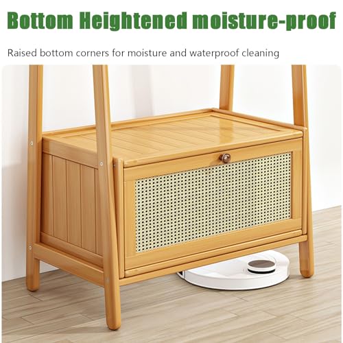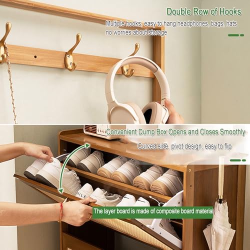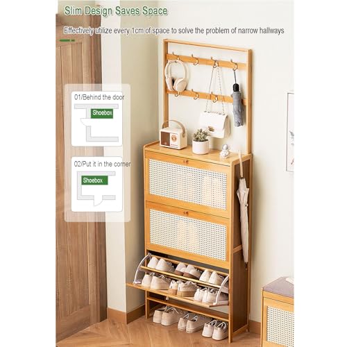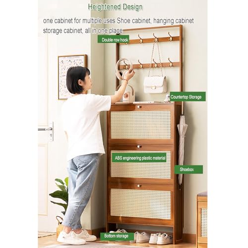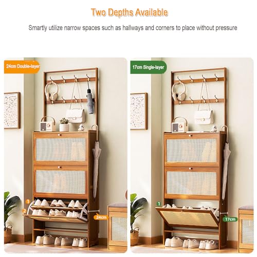 Shoe Cabinet with Flip Drawer Multifunctional Slim Hidden Slim Shoe Rack Organizer Freestanding Bamboo Shoe Shelf Coat Rack for Closet Hallway Bedroom Entryway, A-50*24*152cm