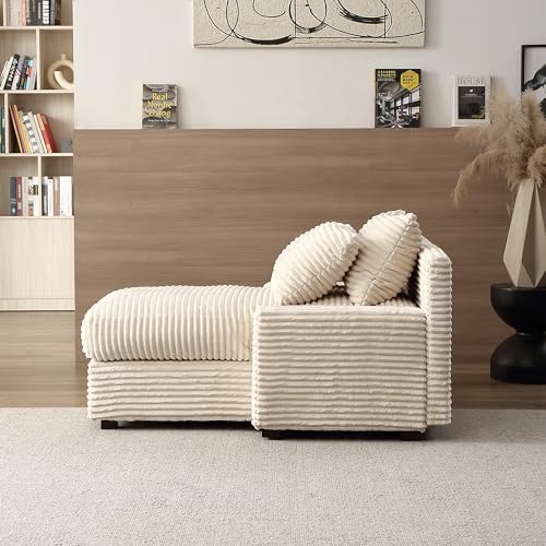 Corduroy Upholstered Chaise Lounge Sofa with Thicked Cushions, Oversized Chair Singel Lazy Sofá Convertible Daybed Recliner Sleeper Couch Bed for Relaxing in Living Room Bedroom, Beige 48.8"