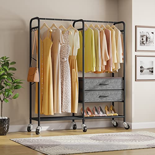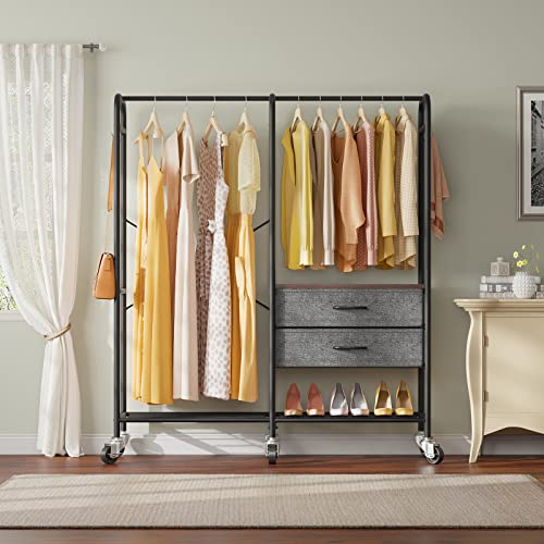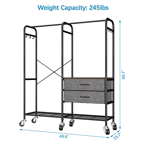 Timate P4 Rolling Clothes Rack for Hanging Clothes, Metal Clothing Rack with Drawers & Lockable Wheels, Heavy Duty Garment Rack Free Standing Closet Rack for Bedroom, 49.6"L x 15.7"W x 65.7"H, White