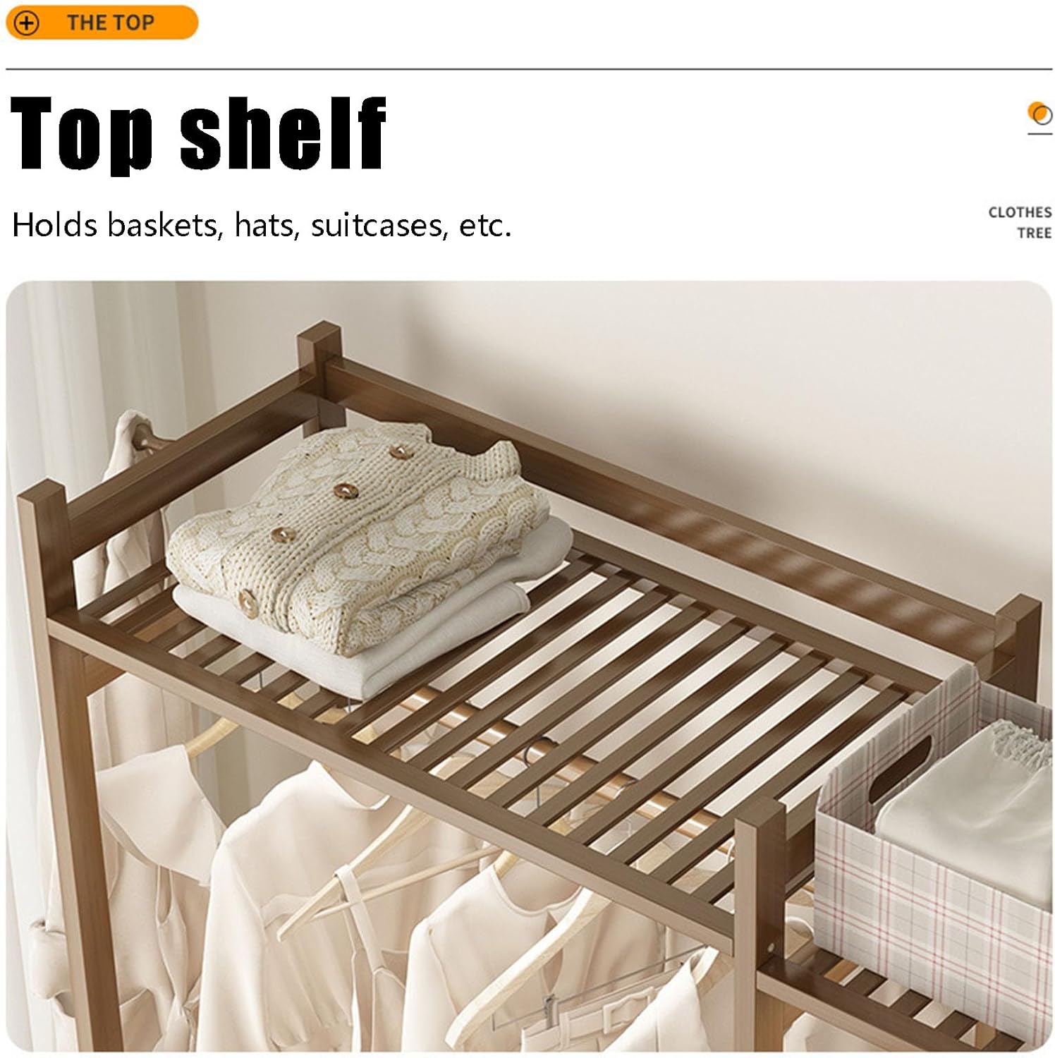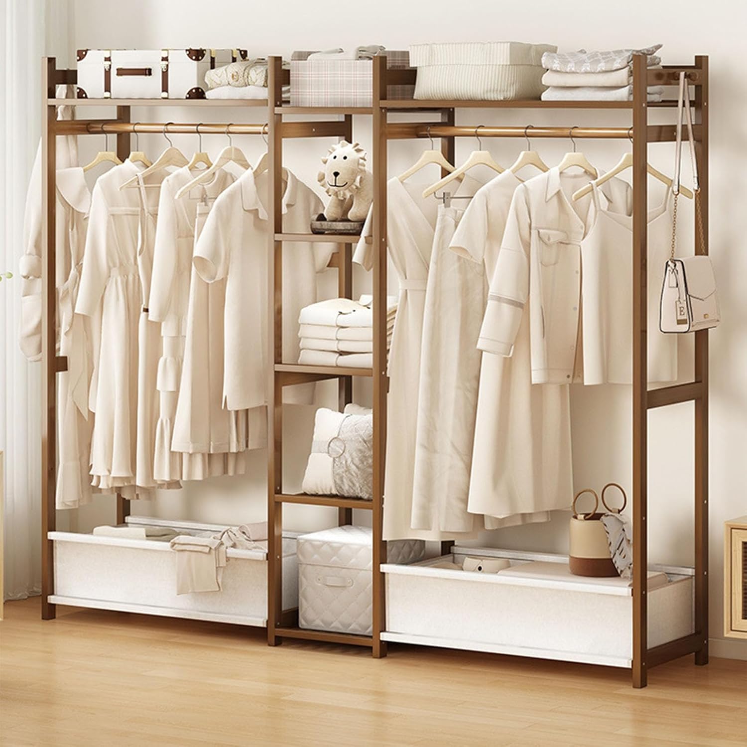 Bamboo Garment Rack, Freestanding Closet Organizer For Hanging Clothes,Floor Standing Closet Shelves And Clothing Storage Wardrobe System For Bedroom/Living Room, Max Load Bearing 300lbs