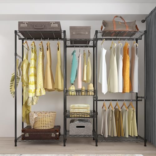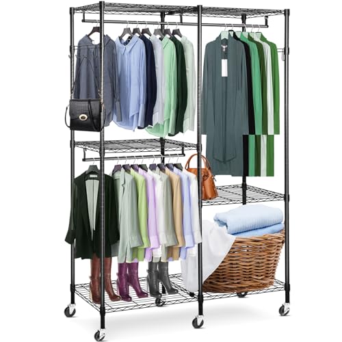 REIBII Clothes Rack Heavy Duty Clothing Rack Load 620LBS Clothing Racks for Hanging Clothes Adjustable Portable Clothes Rack Garment Rack Free Standing Wardrobe Closet