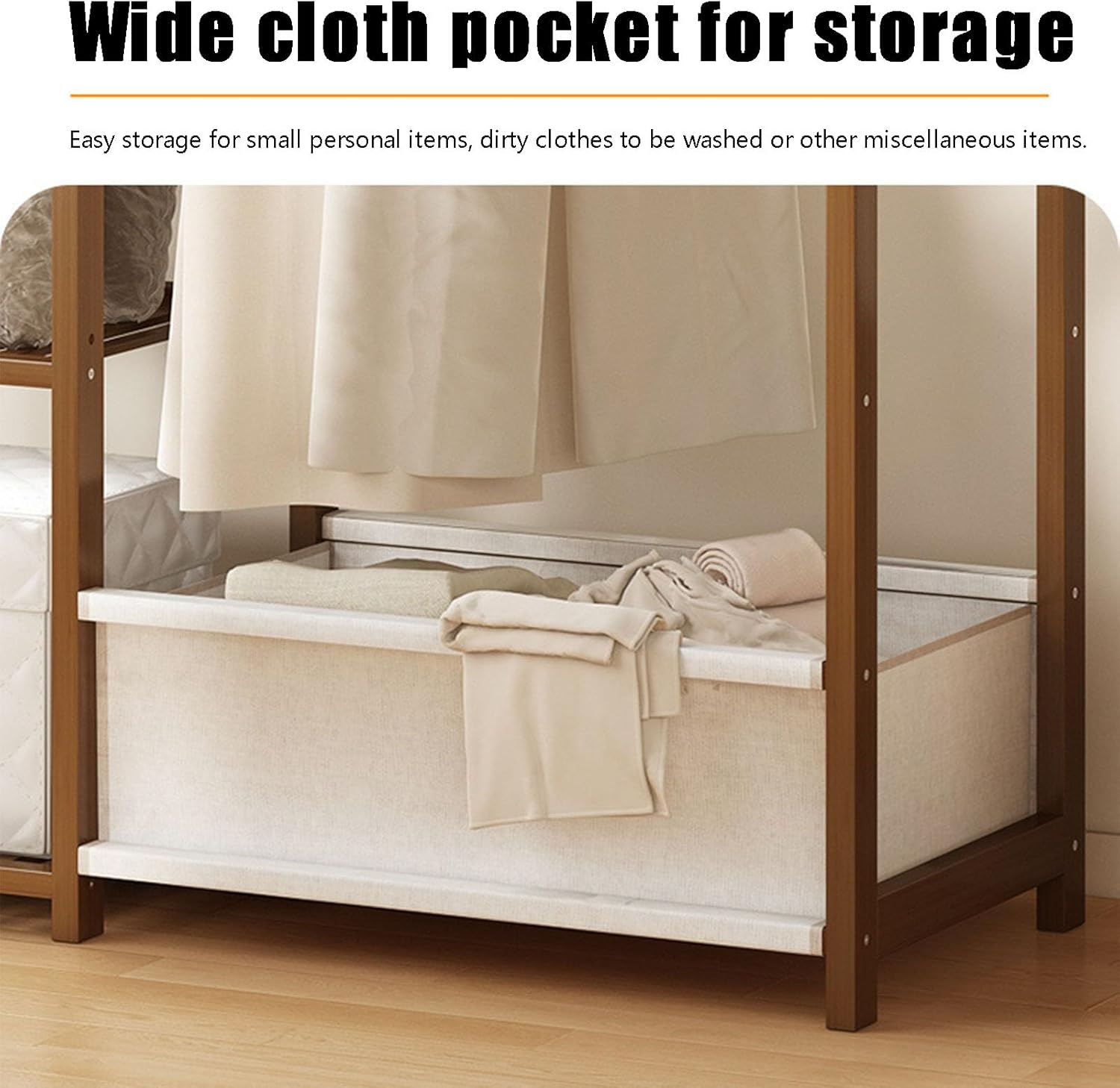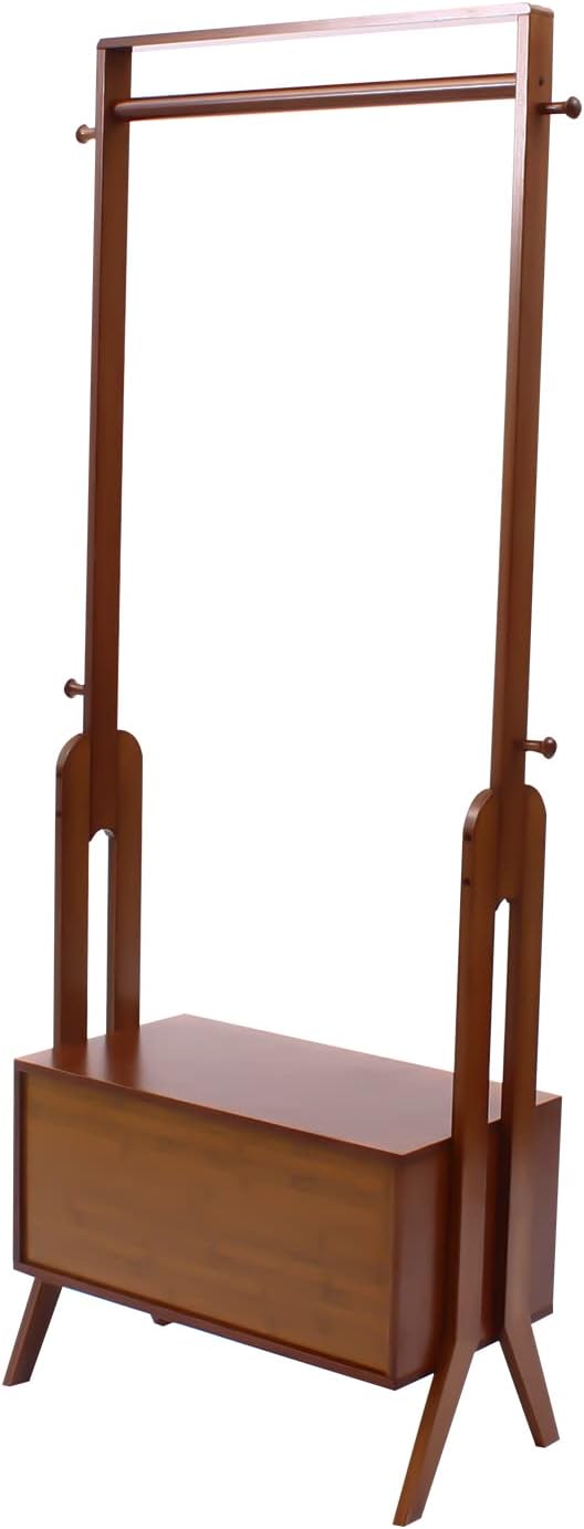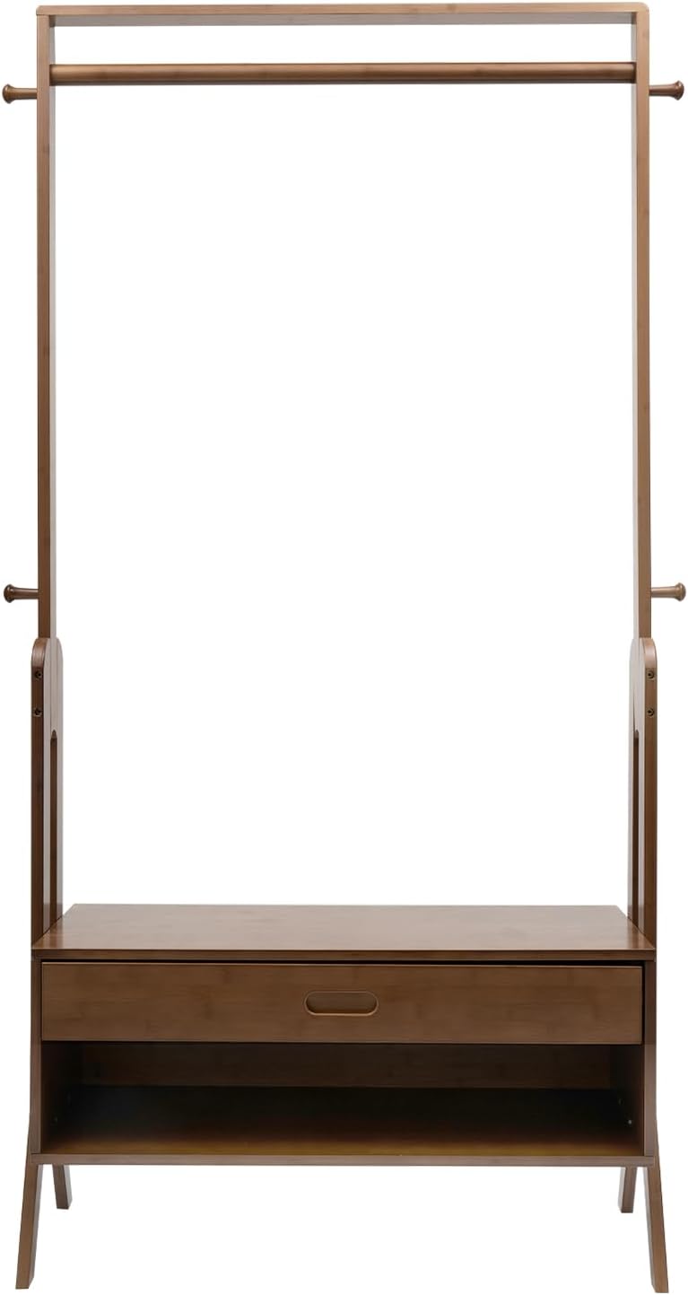 Bamboo Garment Rack Freestanding Closet Organizers for Hanging Clothes with Drawer Multi-functional Sturdy Coat Rack for Cloakrooms, Bedrooms, Entrances