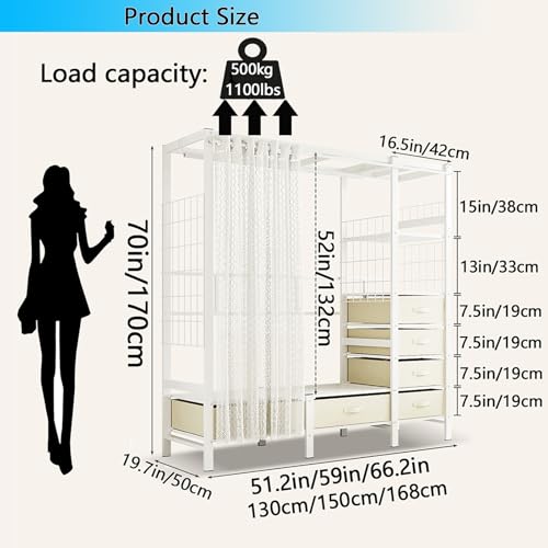 Foldable Clothing Rack With Cover, Loads 1100LBS, Heavy-duty Clothes Rack for Bedroom With 4 Drawers And 4 Storage, Clothing Garment Rack for Hanging Clothes Coat Storage Organizer (51in/130cm)