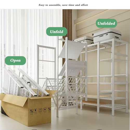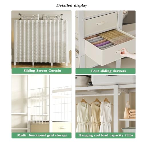 Foldable Clothe Rack with Cover Load 1200lbs Heavy-Duty Portable Wardrobe with 7 Shelves and 4 drawers Freestanding Clothing Coat Storage Rack Garment Rack for Hanging Clothes (White 130cm/51.1in)