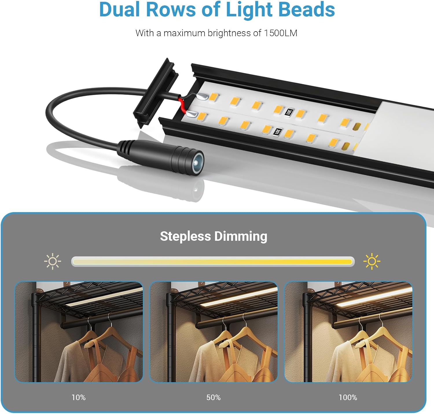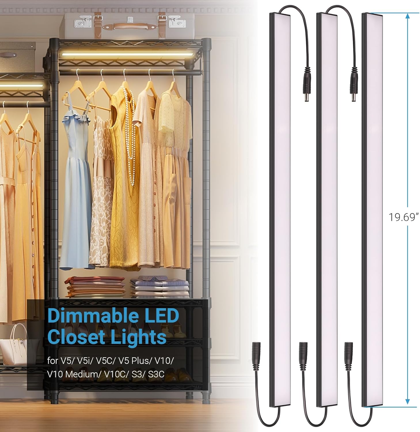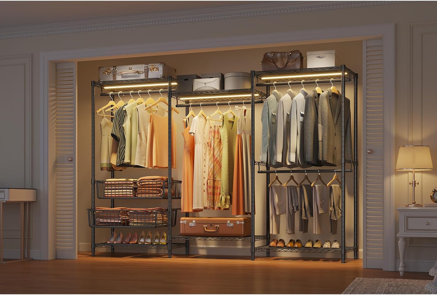 VIPEK V10 Garment Rack with Dimmable LED Lights, Black Heavy Duty Clothes Rack for Hanging Clothes with 3000K Warm White Light, Freestanding Wardrobe Closet Organizer and Storage