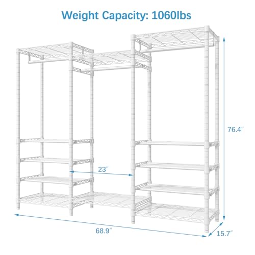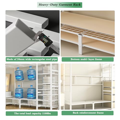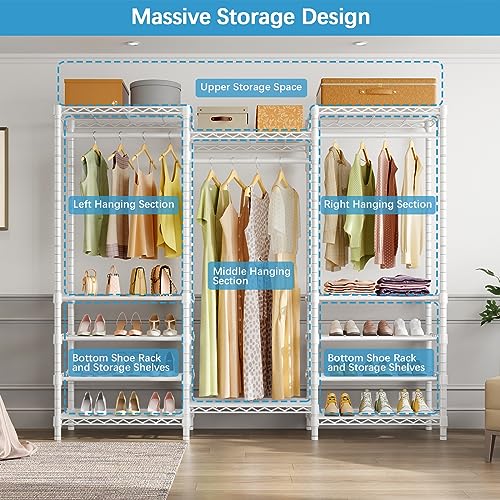 VIPEK S3i Heavy Duty Garment Rack with Adjustable Shoe Rack Wire Shelf, Large Wardrobe Closet Organizer Storage, Freestanding Clothes Rack with Hanging Rod, Custom Closet Rack, White