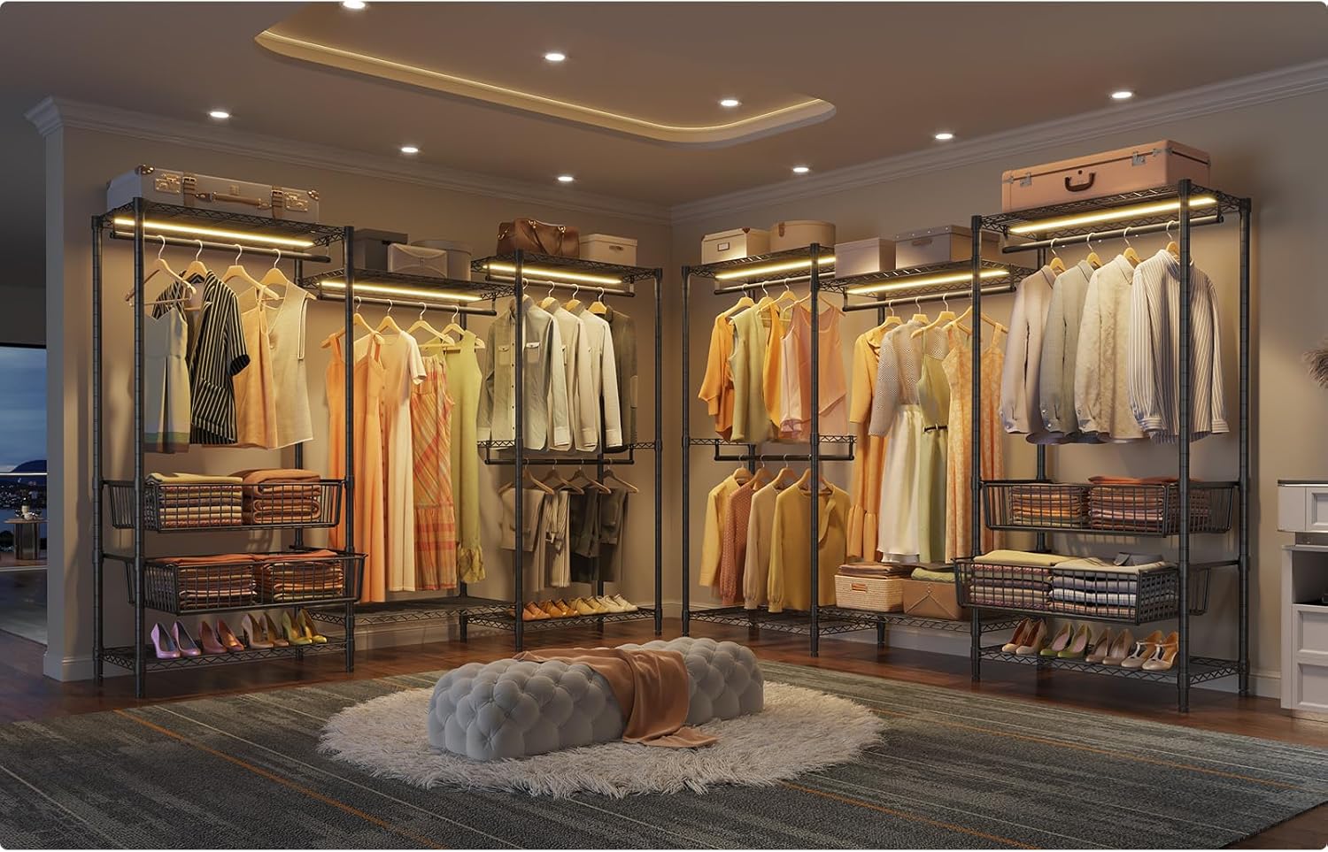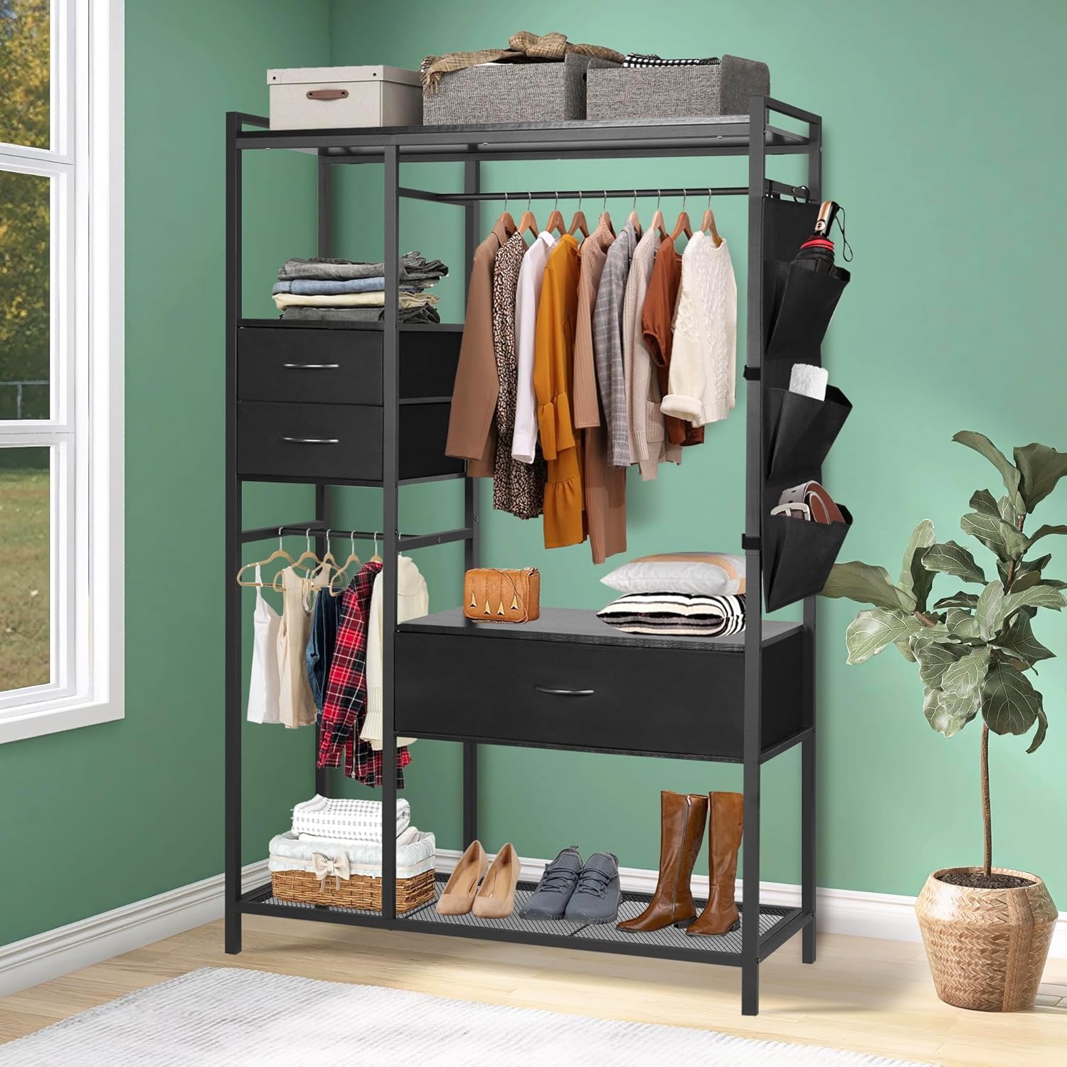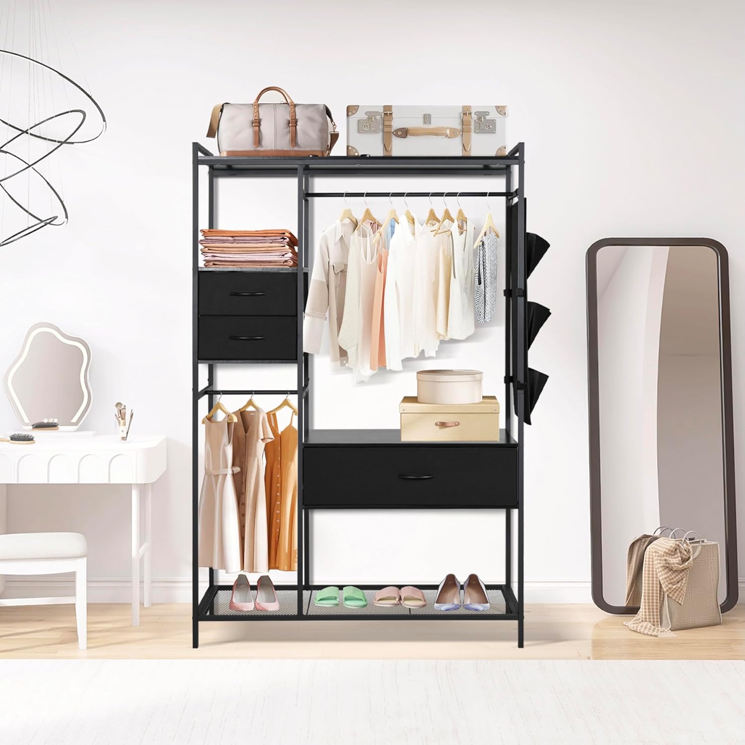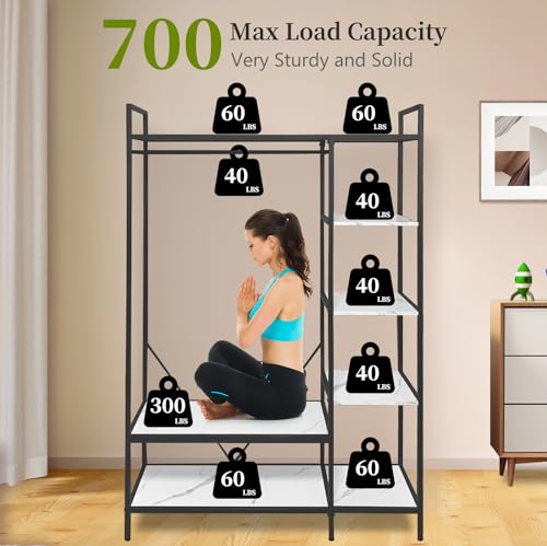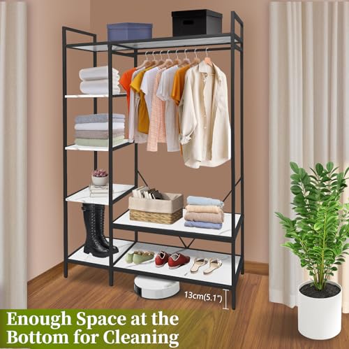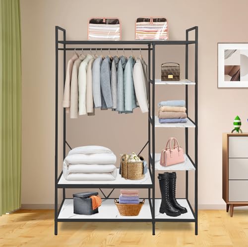 Freestanding Closet Organizer, Heavy Duty Clothes Rack for Hanging Clothes, Open Wardrobe Closet Garment Rack for Bedroom