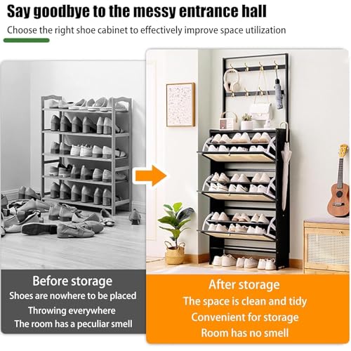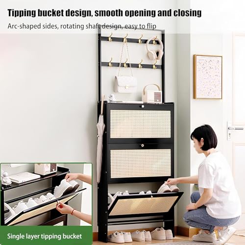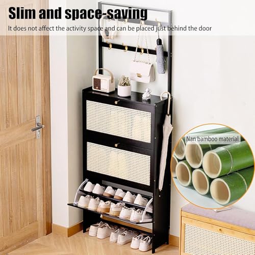 Rattan Shoe Cabinet with Coat Rack, with 2/3 Flip Drawers and Storage Shelves, Large Shoe Rack Organizer, for Closet Hallway Bedroom Entryway,2 door,70cm