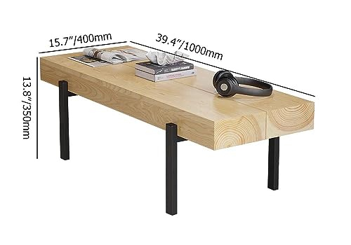 homary 39" Farmhouse Small Coffee Table Narrow Rectangular Cocktail Table Pine Wood Top (Pine Wood)