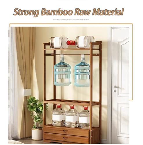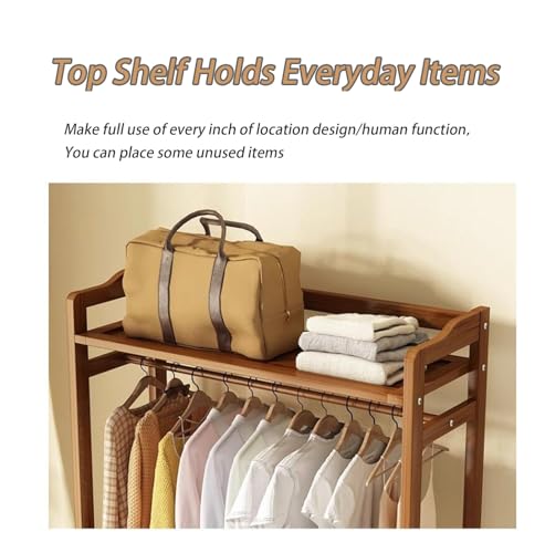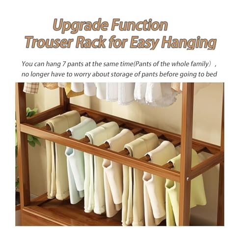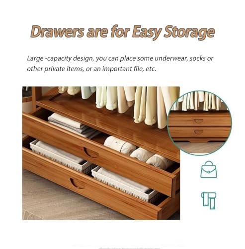Bamboo Garment Rack, Freestanding Closet Organizers with a Drawer, 300lbs Load Bearing Coat Rack, Clothing Storage Shelves, for Entryway Dorm Room Bedroom Living Room, Brown